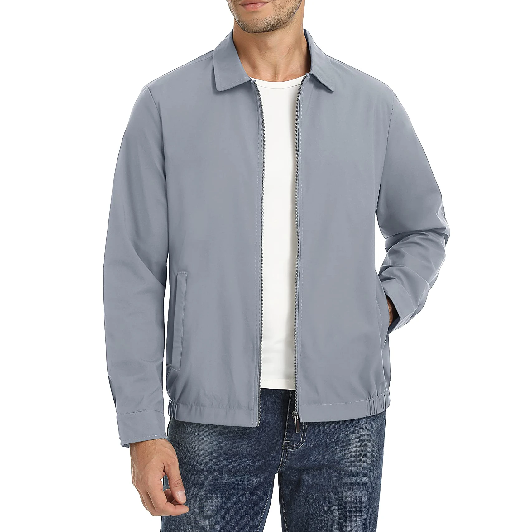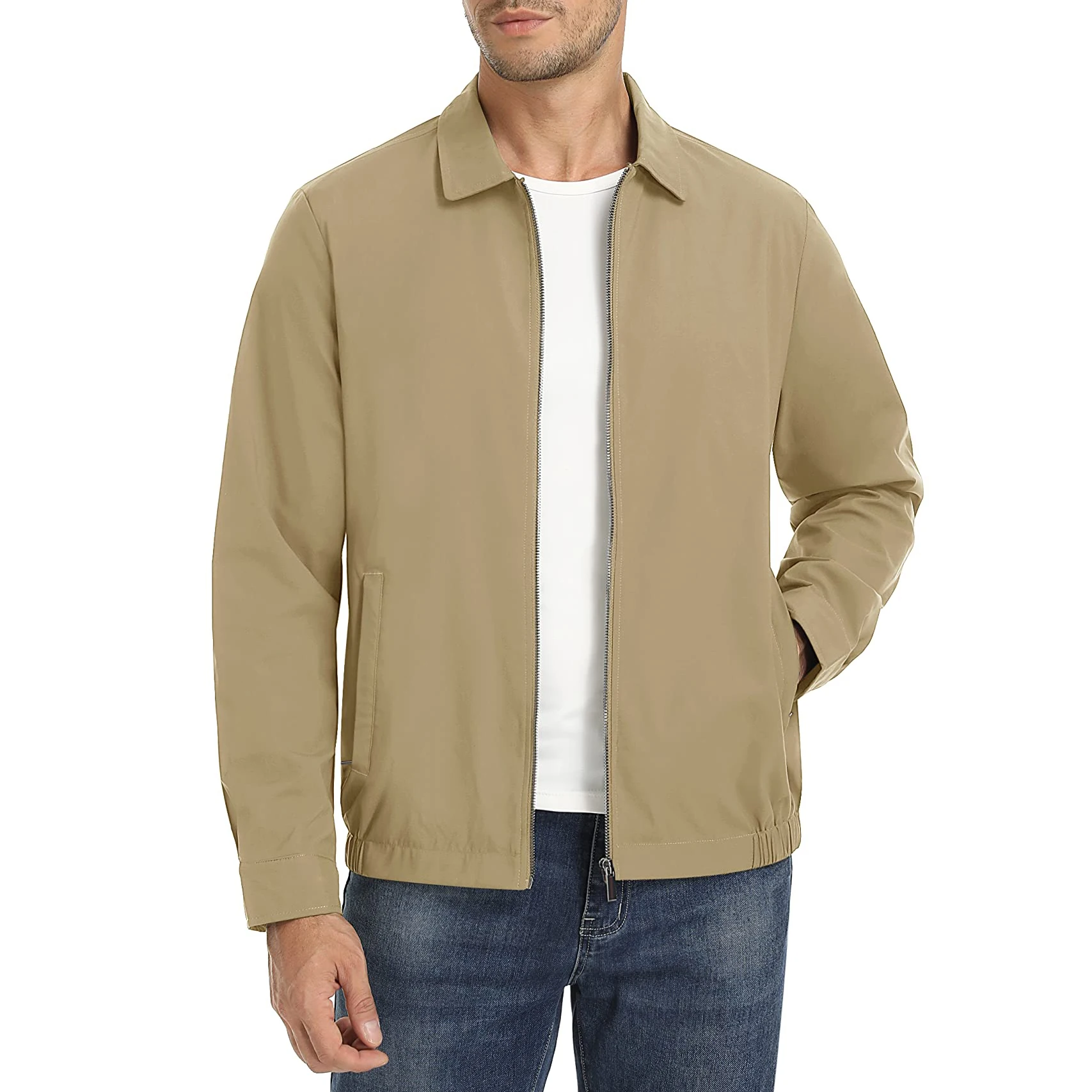 1 * Мужская Легкая Повседневная куртка на молнии с отложным воротником (без белых рубашек и других фитингов)