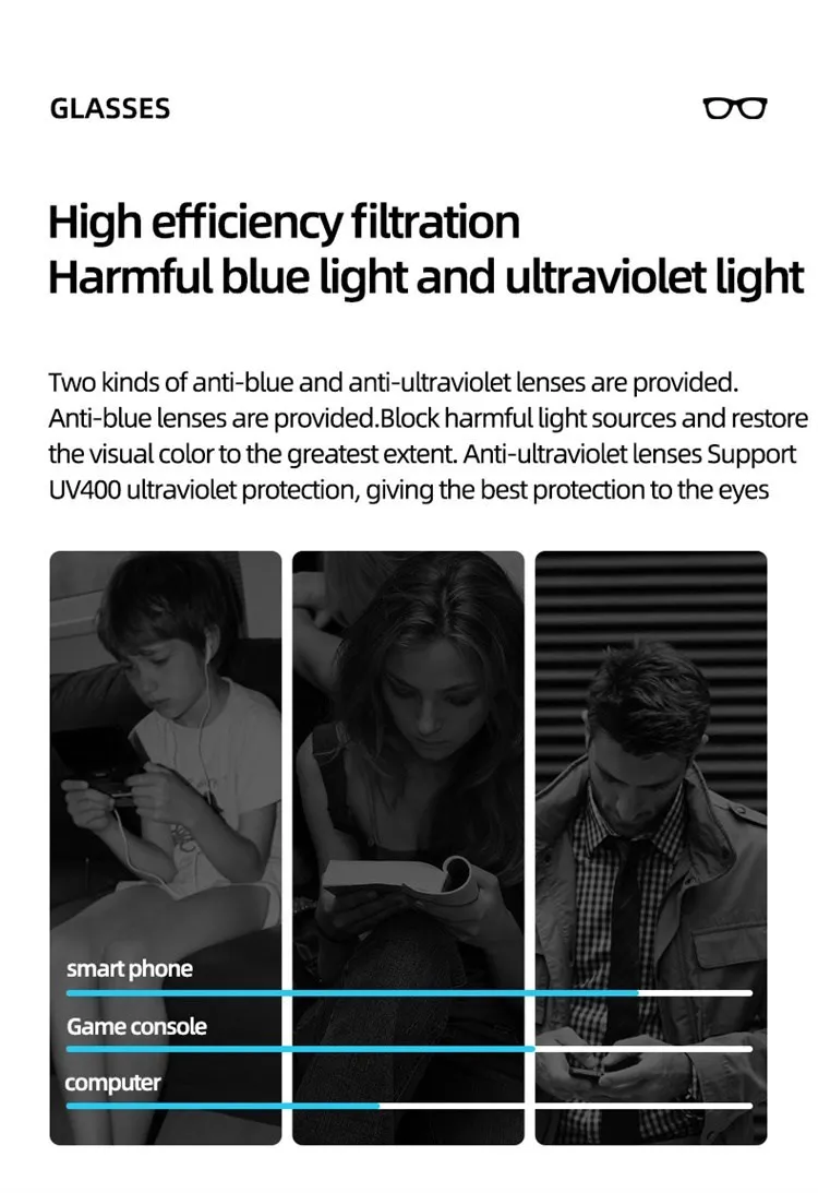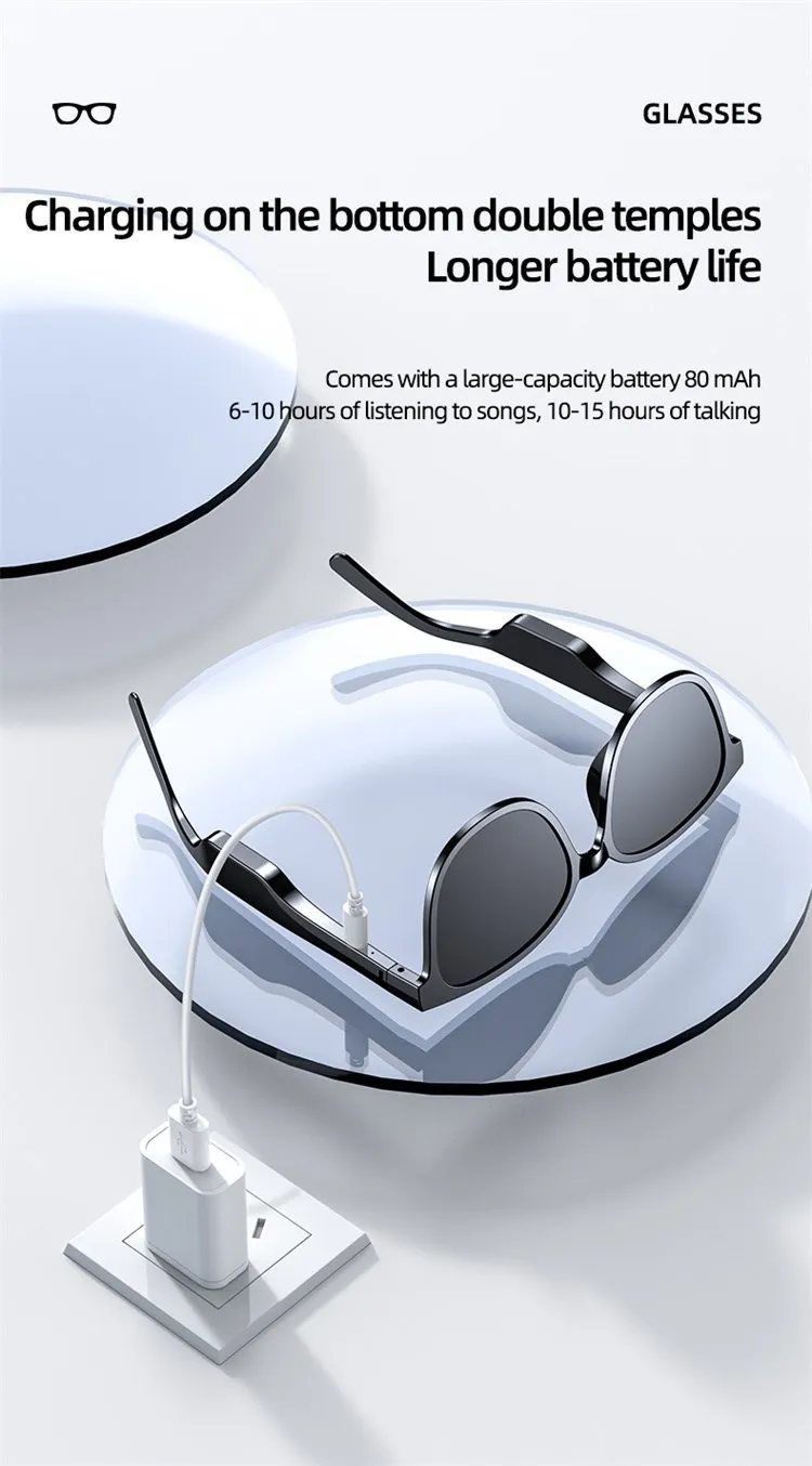 1. Очки для динамиков Bluetooth: Динамический привод, уникальный дизайн звуковой полости, чтобы избежать нарушения слуха. Открытый дизайн позволяет вам оставаться в курсе окружающей среды, избегать опасностей и наслаждаться музыкой.