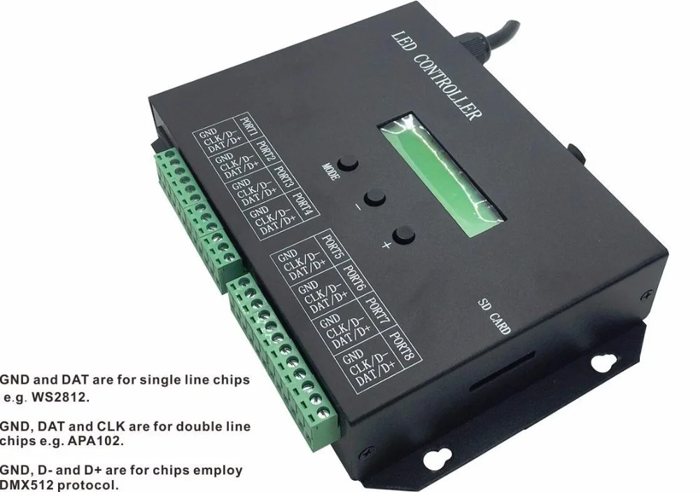 8ports 8192pixels Full Color Pixel Controller RGB Led Programmable Controller Led Strip SD Card Controller Work with DMX Console