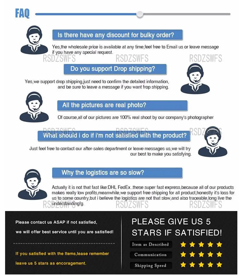 3. Ваши отзывы 5 звезд будут высоко оценены, и это побудит нас предложить вам более доступную и высококачественную одежду.