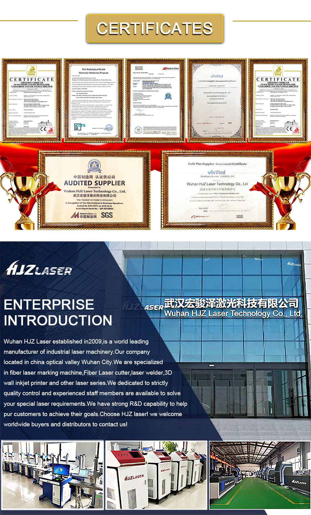 Wuhan HJZ Laser основана в 2009 году, является ведущим мировым производителем промышленного лазерного оборудования. Наша компания расположена в китайской оптической долине Ухань. Мы специализируемся на волоконно-лазерной маркировочной машине, волоконно-лазерной резке, лазерной сварке, 3D стеновом струйном принтере и других лазерных сериях. Мы стремимся к строгому контролю качества и опытные сотрудники доступны для решения ваших специальных лазерных требований. У нас есть сильные возможности для исследований и разработок, чтобы помочь нашим клиентам достичь своих целей. Выберите HJZ laser! Мы приветствуем покупателей и дистрибьюторов по всему миру, чтобы связаться с нами!