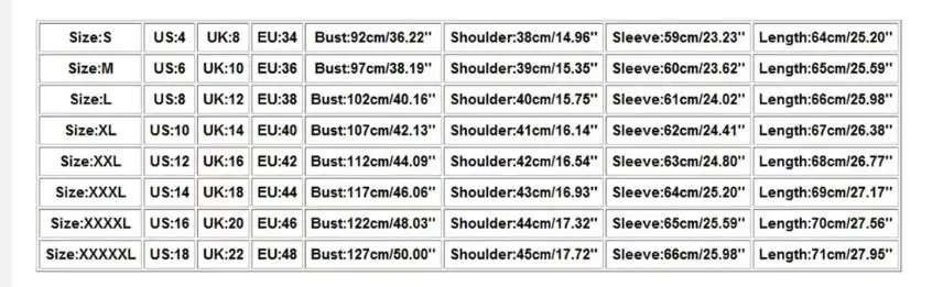 Таблица размеров: