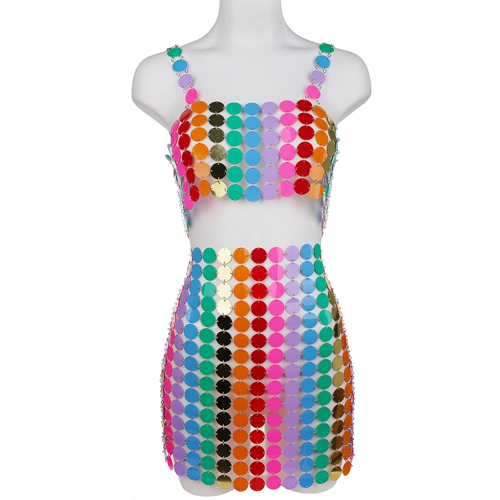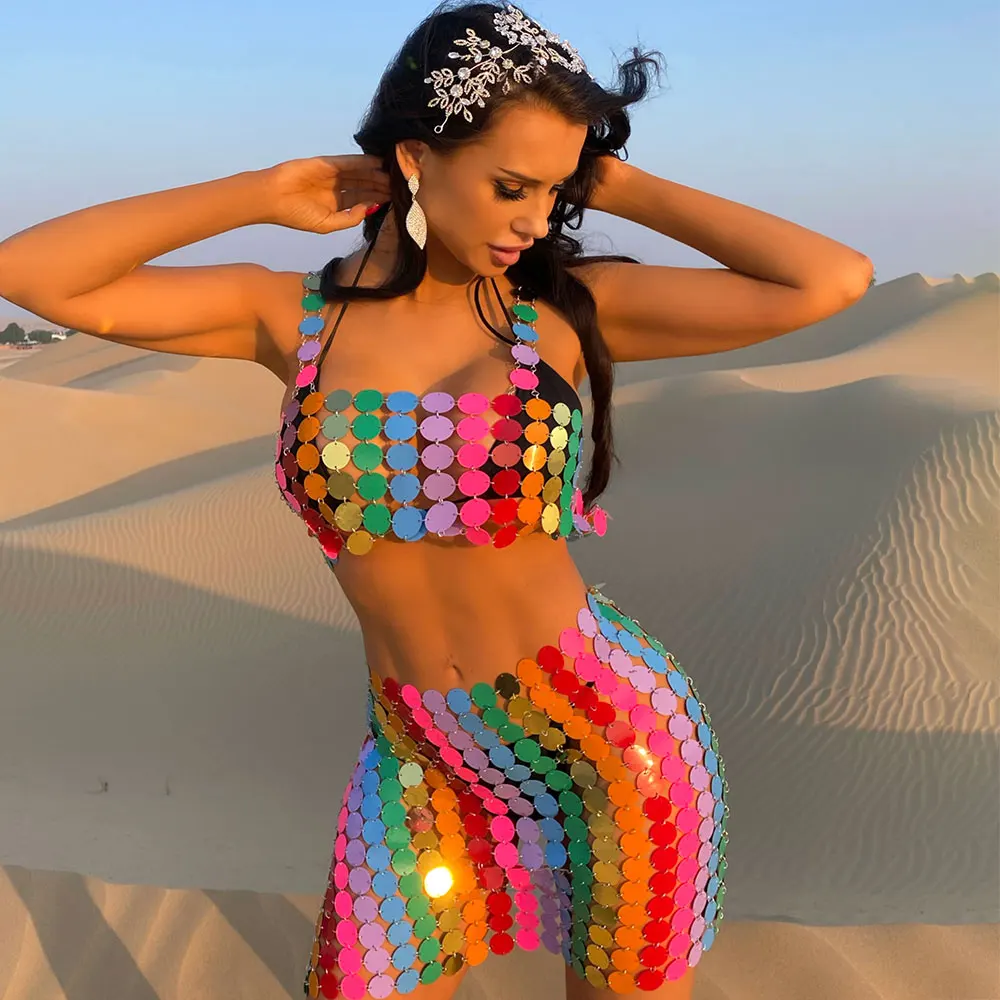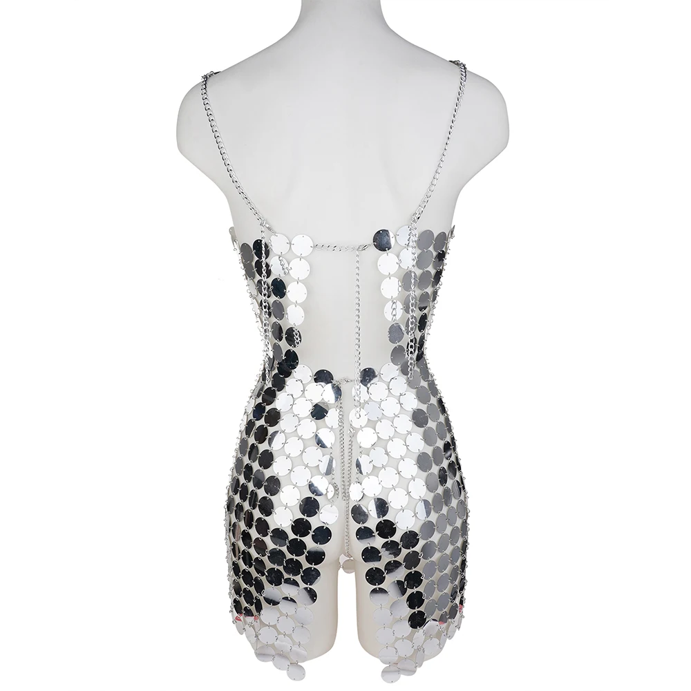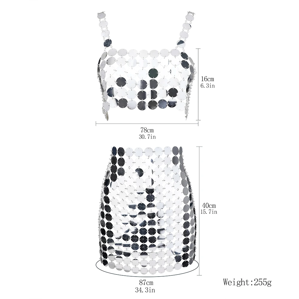 Сверкайте как диско-шар в реальной жизни! Самый Популярный блестящий дизайн, поверх этого урожая, вы будете как Мерцающая звезда. Без рукавов, с лямкой на шее, прочная основа, блестящий укороченный топ, сексуальный металлический жилет с лямкой на шее, регулируемая цепочка, легко заставит вас выглядеть так сексуально и очаровательно, оставайтесь с любимым человеком