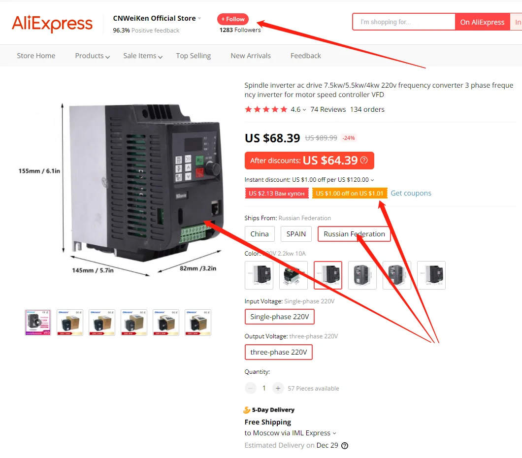 2, Примечание: Этот инвертор теперь Максимальная частота по умолчанию составляет 50 Гц, вы можете установить максимум 400 Гц, 0-400 Гц для шпинделя двигателя.