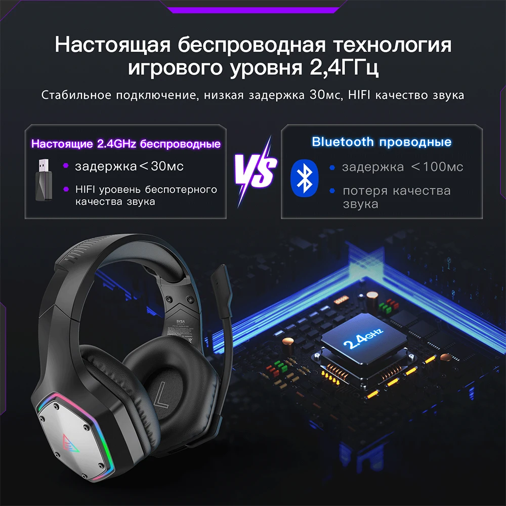 * Название позиции: Настоящие беспроводные игровые наушники 2,4ГГц