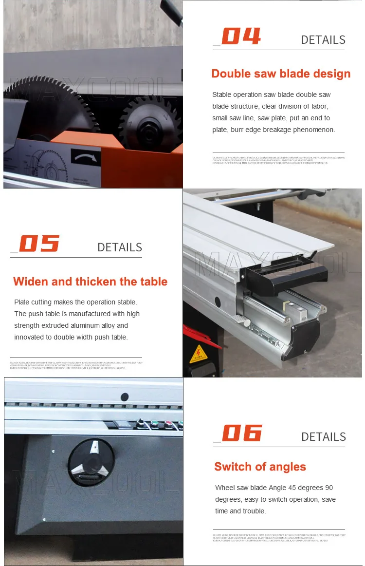 Эта пила для скользящего стола является высококачественной машиной, произведенной в соответствии с международной передовой техникой.