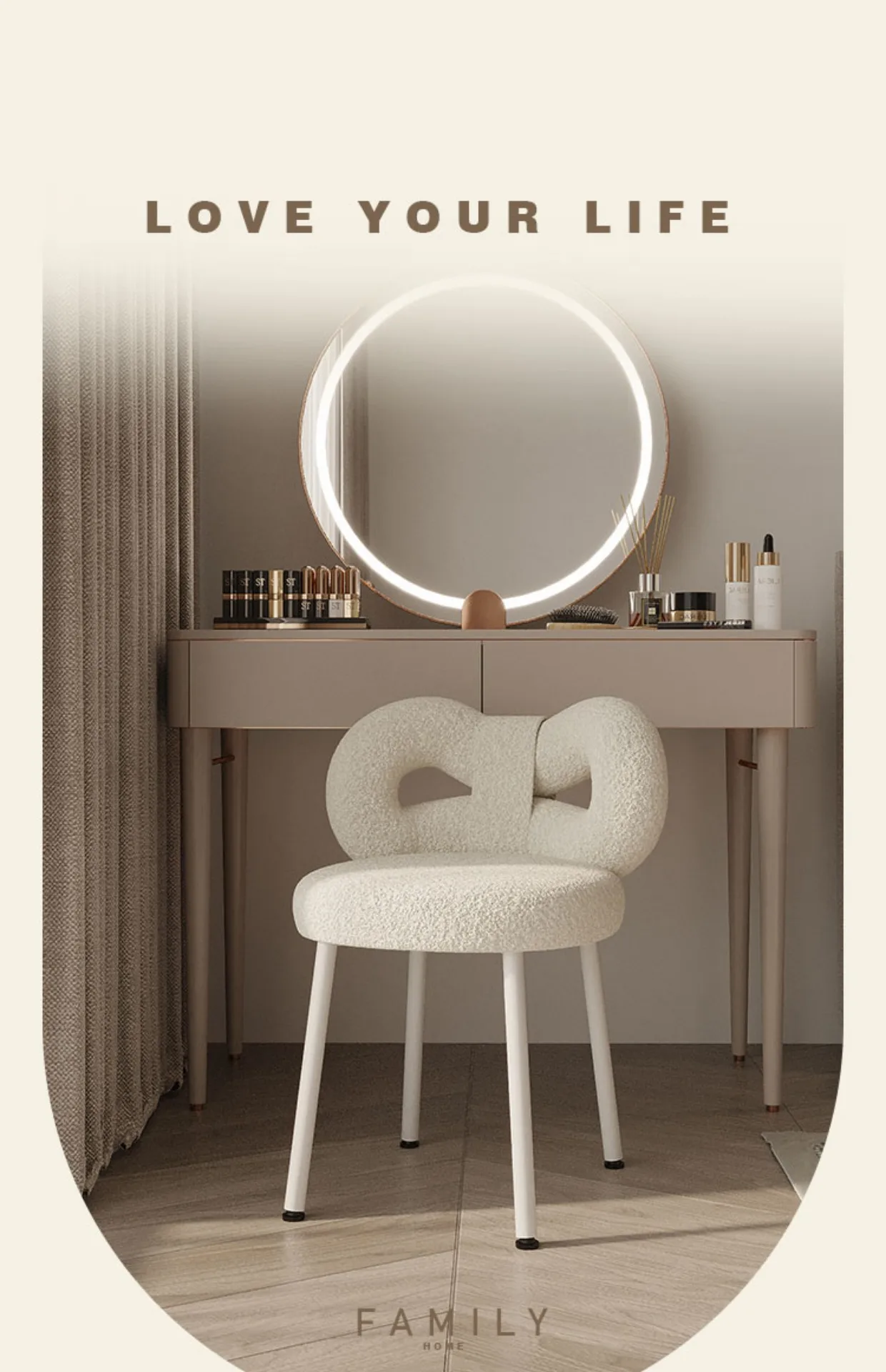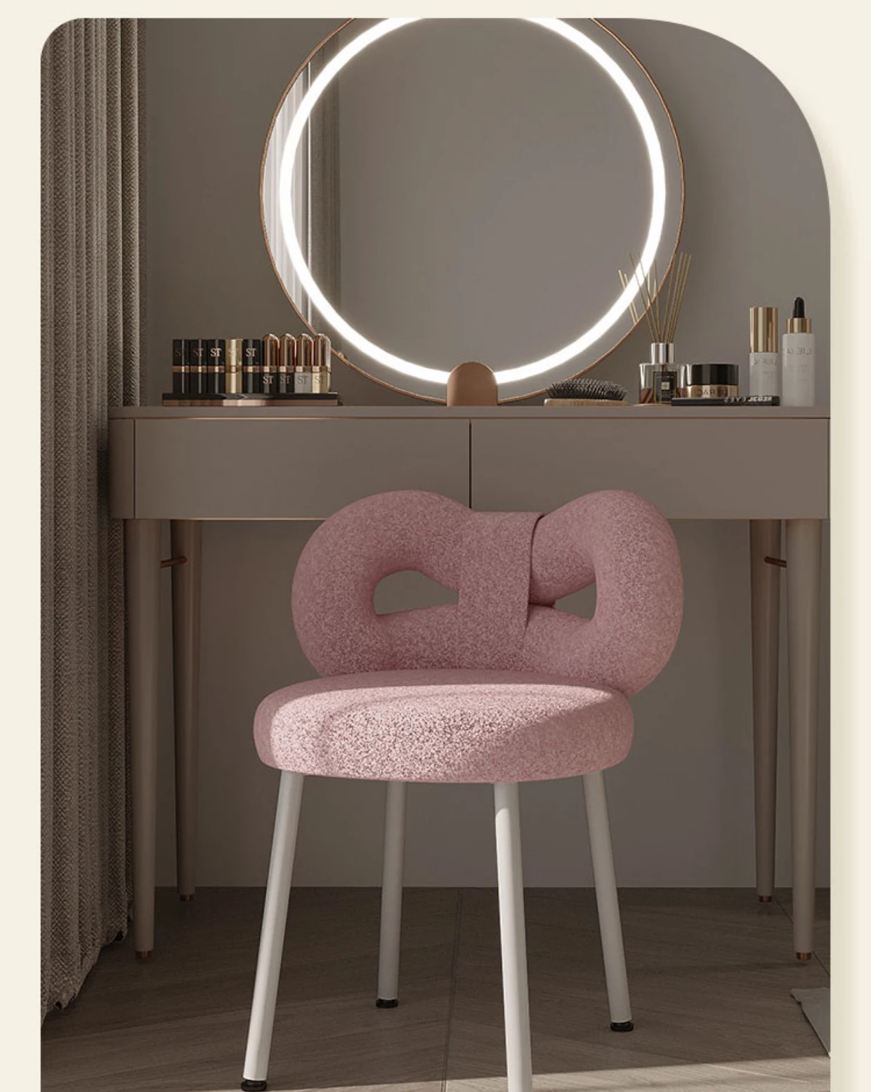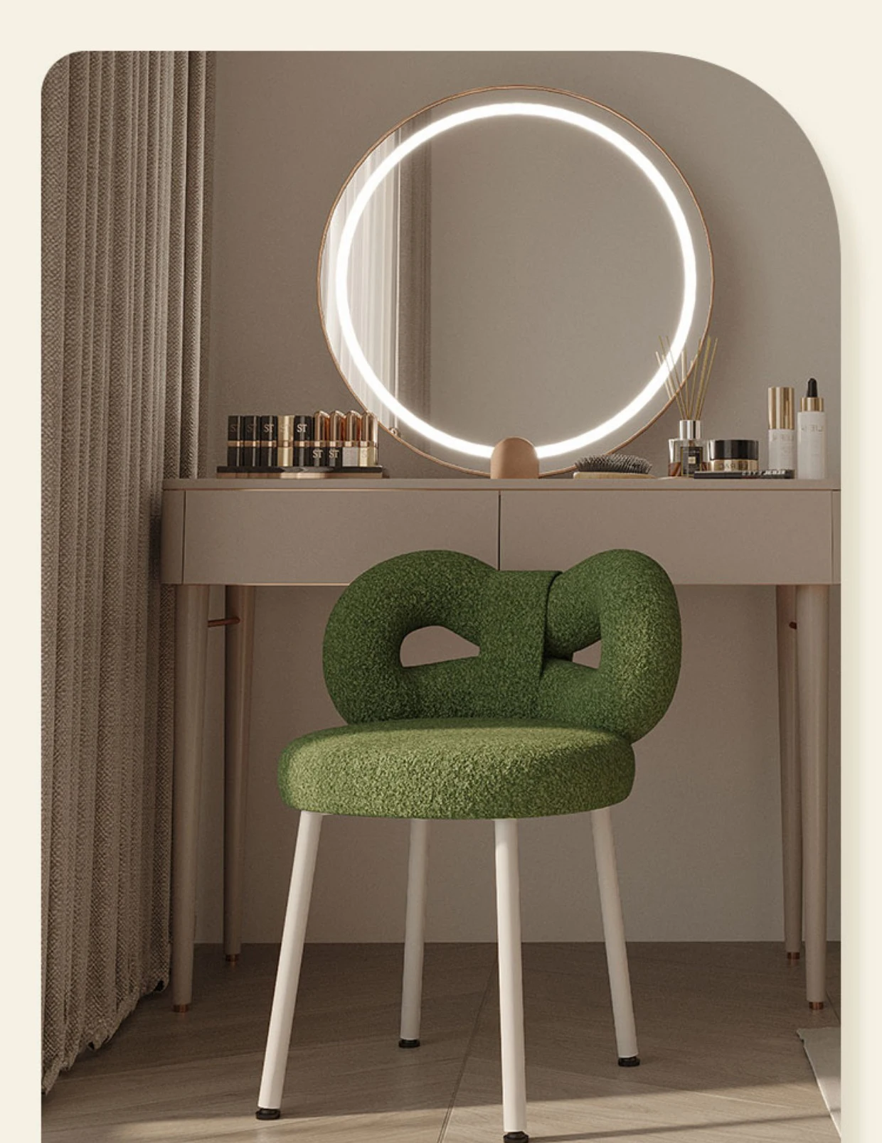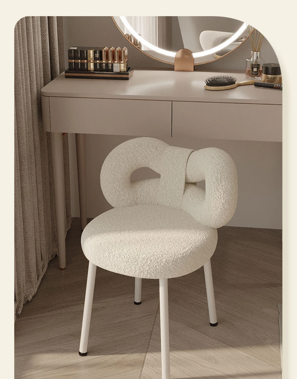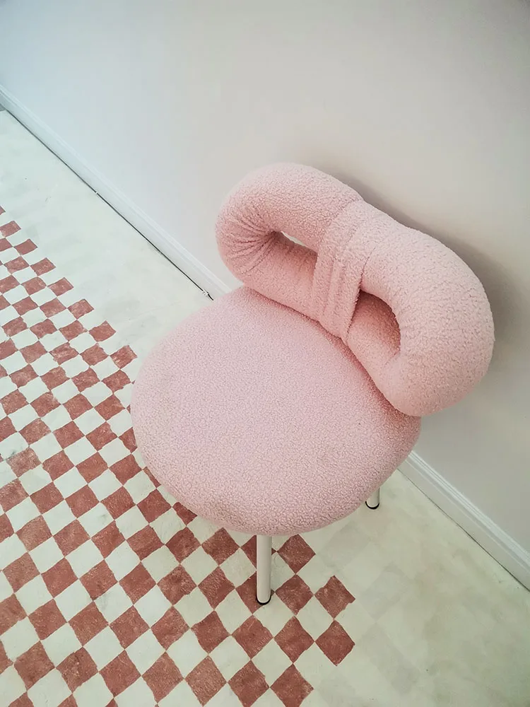 Скандинавская мебель для украшения дома, дизайнерский косметический стул кремового стиля, современный простой американский обеденный стул для гостиной, спальни, с бантом, из овечьей шерсти, кашемировый туалетный столик, настольные стулья