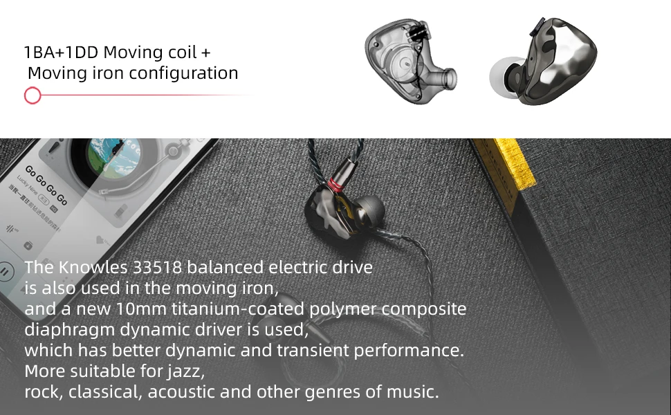 1BA + 1DD подвижная катушка + Подвижная железная конфигурация