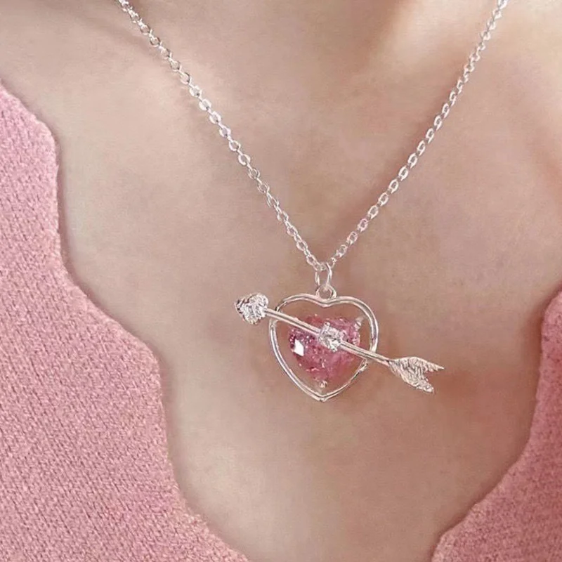 Модные подвески в форме сердца и стрелы ангела для женщин, милое розовое сердце с цирконием, вечерние ювелирные изделия для девушек