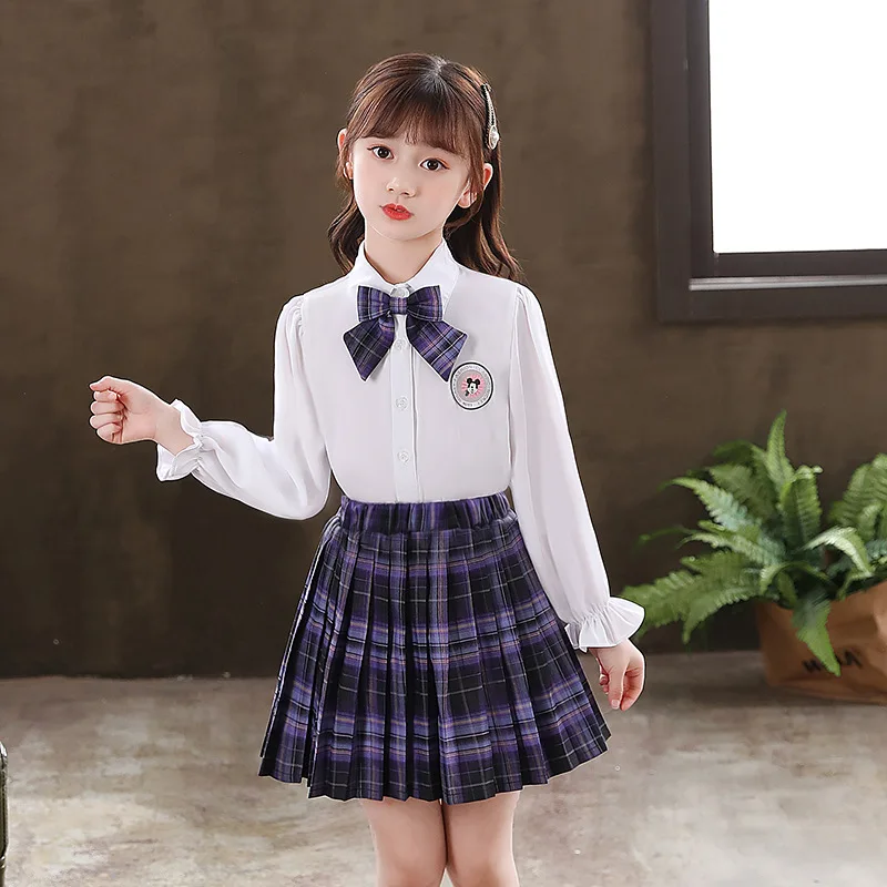 Японская школьная форма для девочек, белая и черная футболка, юбка, костюм школьницы, комплект с длинными рукавами, милая школьная форма с бантом, новинка 2023 года