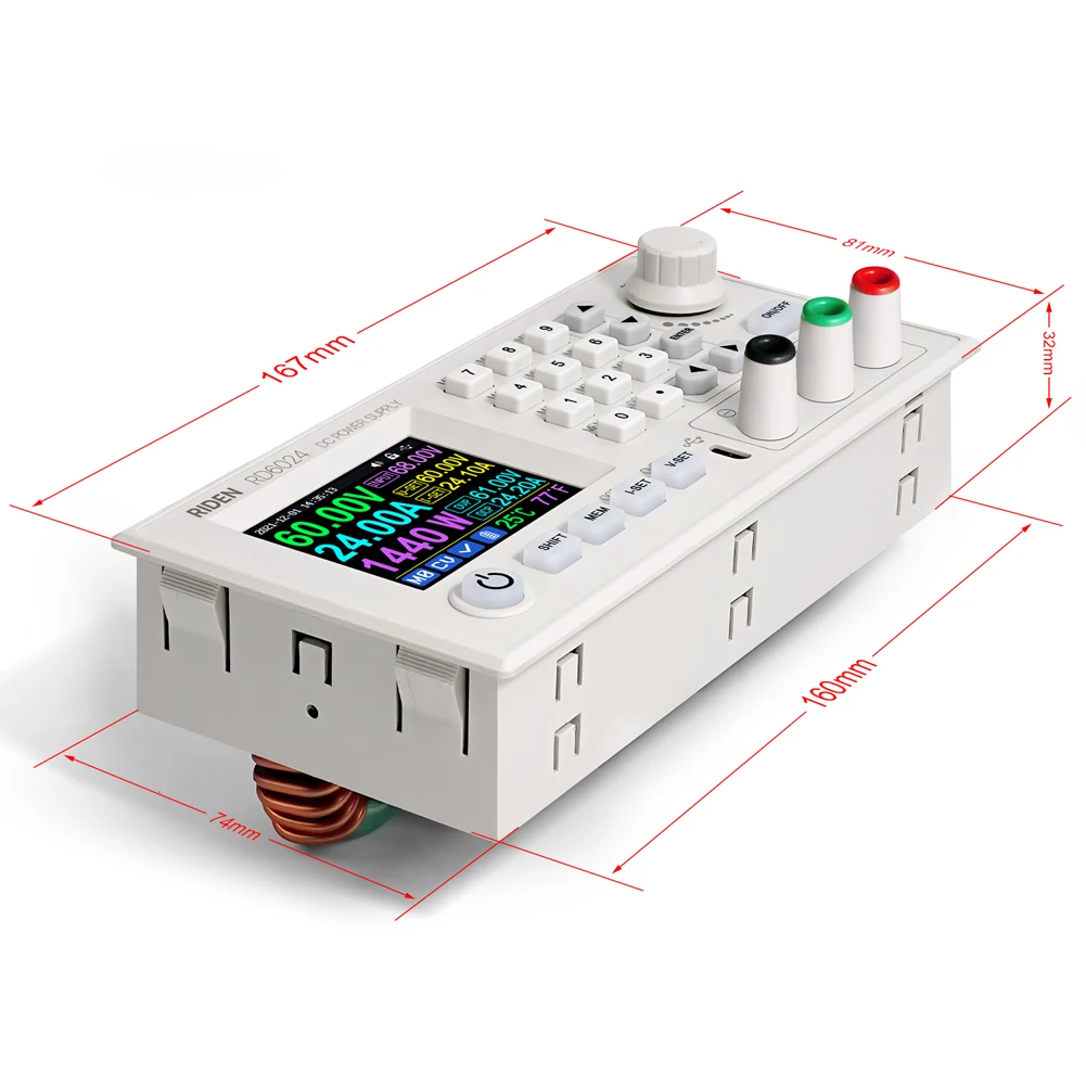 Это своего рода качественный источник питания постоянного напряжения постоянного тока с постоянным током, выходное напряжение 60 в, выходной ток 18 А, выходная мощность 1080 Вт, сильный и мощный. Большой размер 2,4 дюймовый цветной ЖК-экран, высокая яркость, несколько информации будут отображаться на одном экране. Клавиатура + кодировщик регулировки комбинации потенциометра, мгновенное Хранение/вызов настройки параметров.