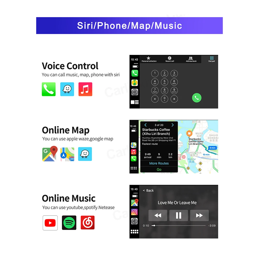 Характеристика: 1. Голосовое управление: Поддержка голосового ассистента/музыки/карт/телефона/сообщений/аудиокниг. Функция голосового ассистента поможет вам позвонить Розе или любому из ваших друзей. Обратите внимание, что наше устройство работает с той же скоростью, что и ваш телефон для скорости IOS. 2. Сенсорный экран и hd-дисплей: Используйте usb-кабель для направленного управления и просмотра телефона на навигационном экране автомобиля. 3. Безопасное вождение без рук: совершать/принимать звонки, проверять голосовую почту, текстовые сообщения и переносить карты. Слушайте свою любимую музыку с помощью приложения для работы в iTunes, IOS music или установленных приложений hands-free. Спецификация: Название продукта: проводной ключ для Carplay Цвет изделия: черный, белый (по желанию) Способ подключения: проводной Размер изделия: около 170*32*13 мм/6,69*1,26*0,51 дюймов Вес: около 65 г Модель: CCPM Входная мощность: 5 в 1 ~ 2,1 А Выходная мощность: 5 В постоянного тока 1 ~ 2,1 А Продукт потребеление энергии: 0,25 W Адаптированное разрешение: 800*480/ 1024*600/ 1280*480 Совместимые устройства: Для iPhone и IOS (7,1 и выше) Для телефона Android (5,1 и выше) Для Android car audio (4.4.2 и выше) Примечание: 1. Оригинальный экран автомобиля не поддерживается, этот продукт поддерживает только экран системы Android. 2. Установите APK перед покупкой; Проверьте, Успешна ли установка: Ссылка для скачивания APK: http:/121.40.123.198:8080/autokit/autokit.apk. 3. Из-за различных настроек монитора и светильник эффект, фактический цвет элемента может быть s светильник ly отличается от цвета, представленного на снимках. Спасибо! 4. Возможны отклонения в 1-2 см вследствие измерений вручную. ![]() 1 * проводной автоматический ключ ![]() ![]()
