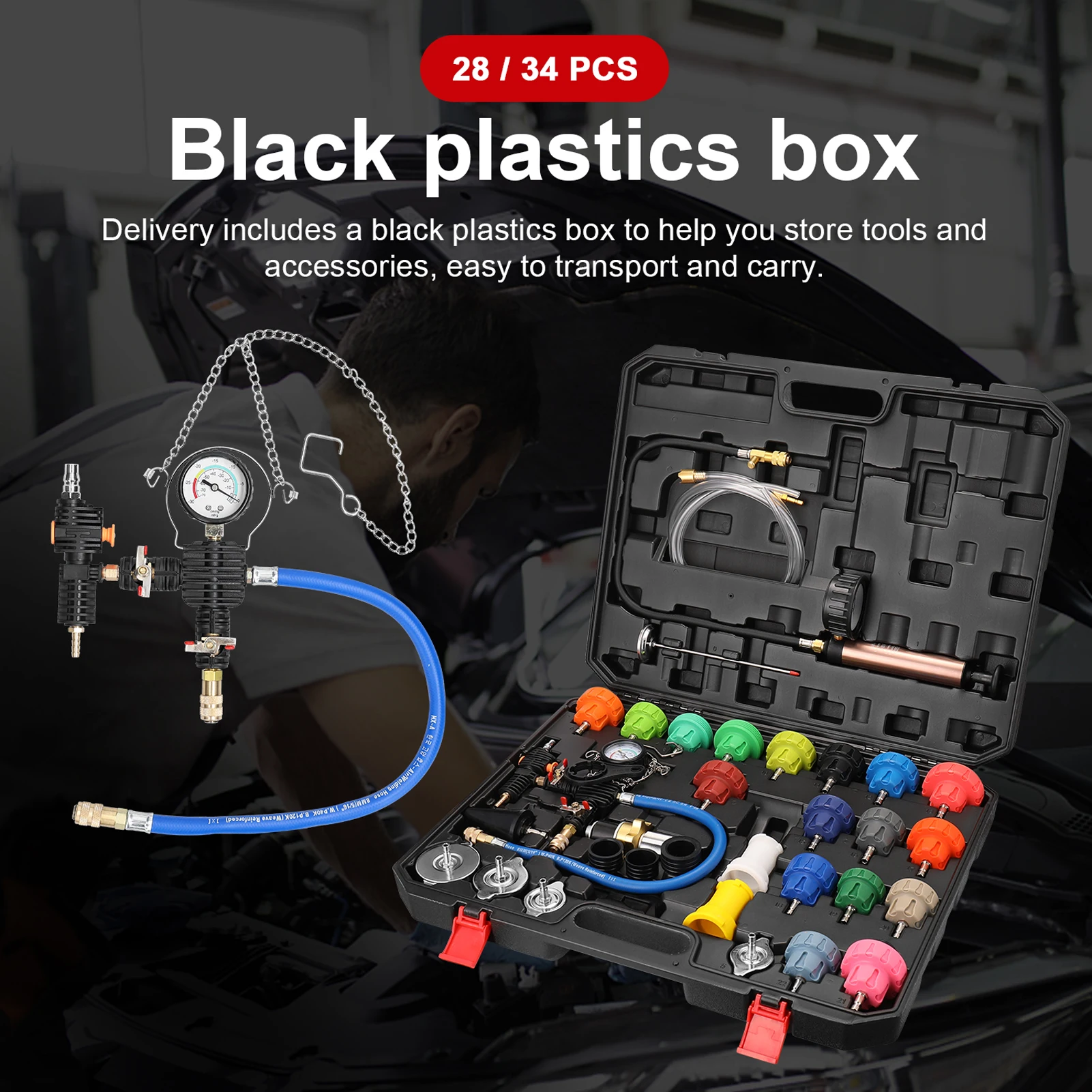 Этот тестер давления радиатора и комплект системы охлаждения насоса позволяют легко тестировать системы радиатора для протечек и быстро менять охлаждающую жидкость.