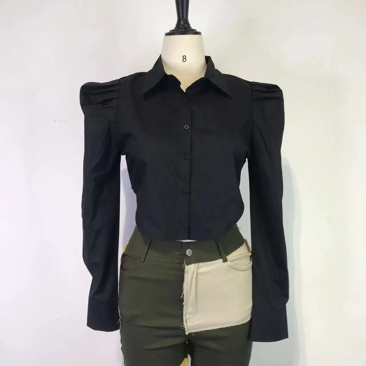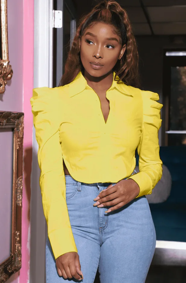 Блузка женская с квадратным вырезом Элегантная Модная приталенная Однотонная