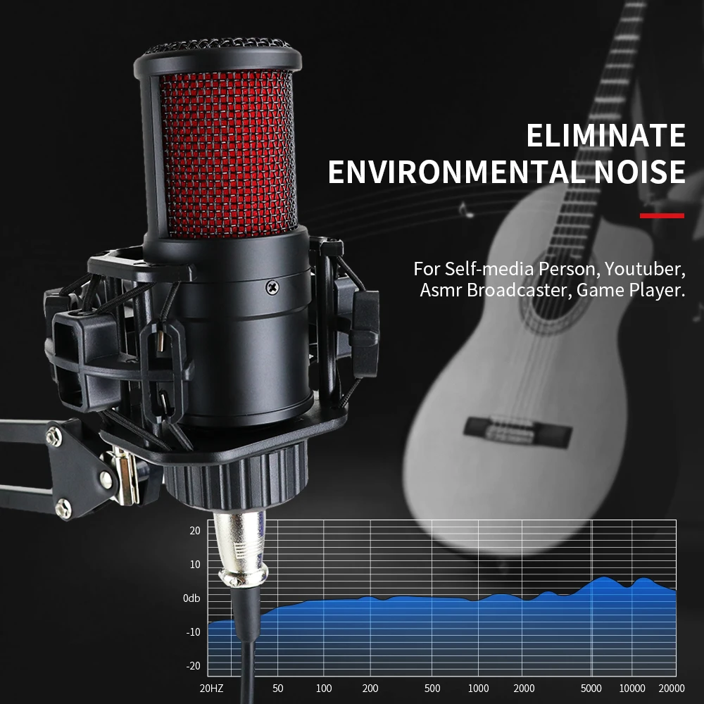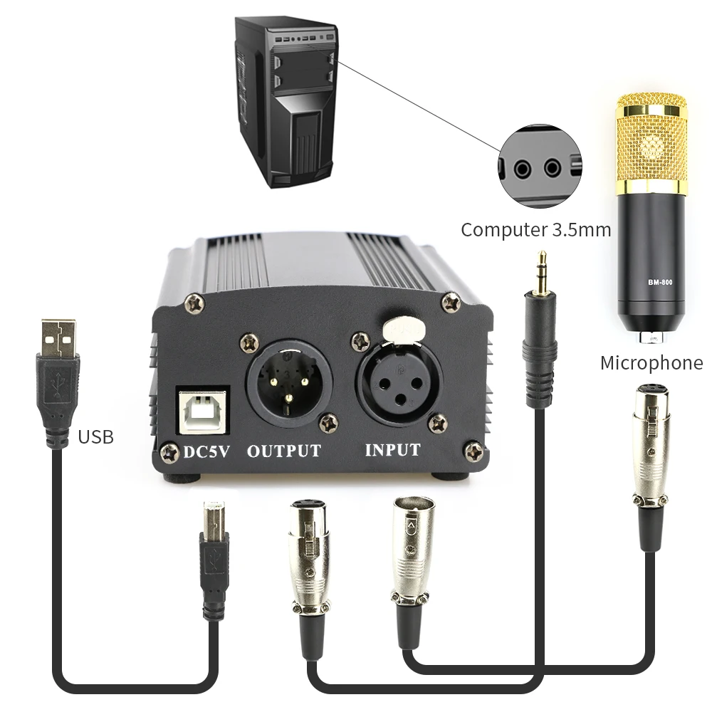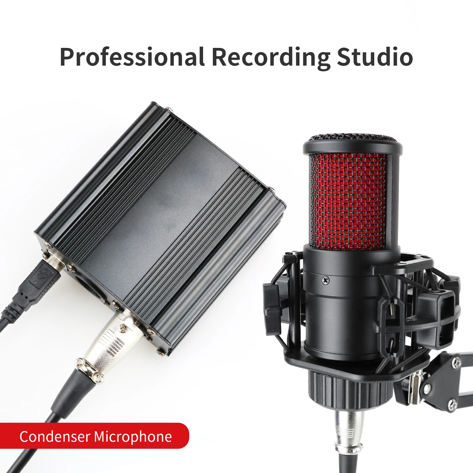 Профессиональный студийный микрофон для ПК, компьютерная запись, домашний конденсаторный микрофон для караоке, Phantom Power, звуковая карта, голосовой чейнджер