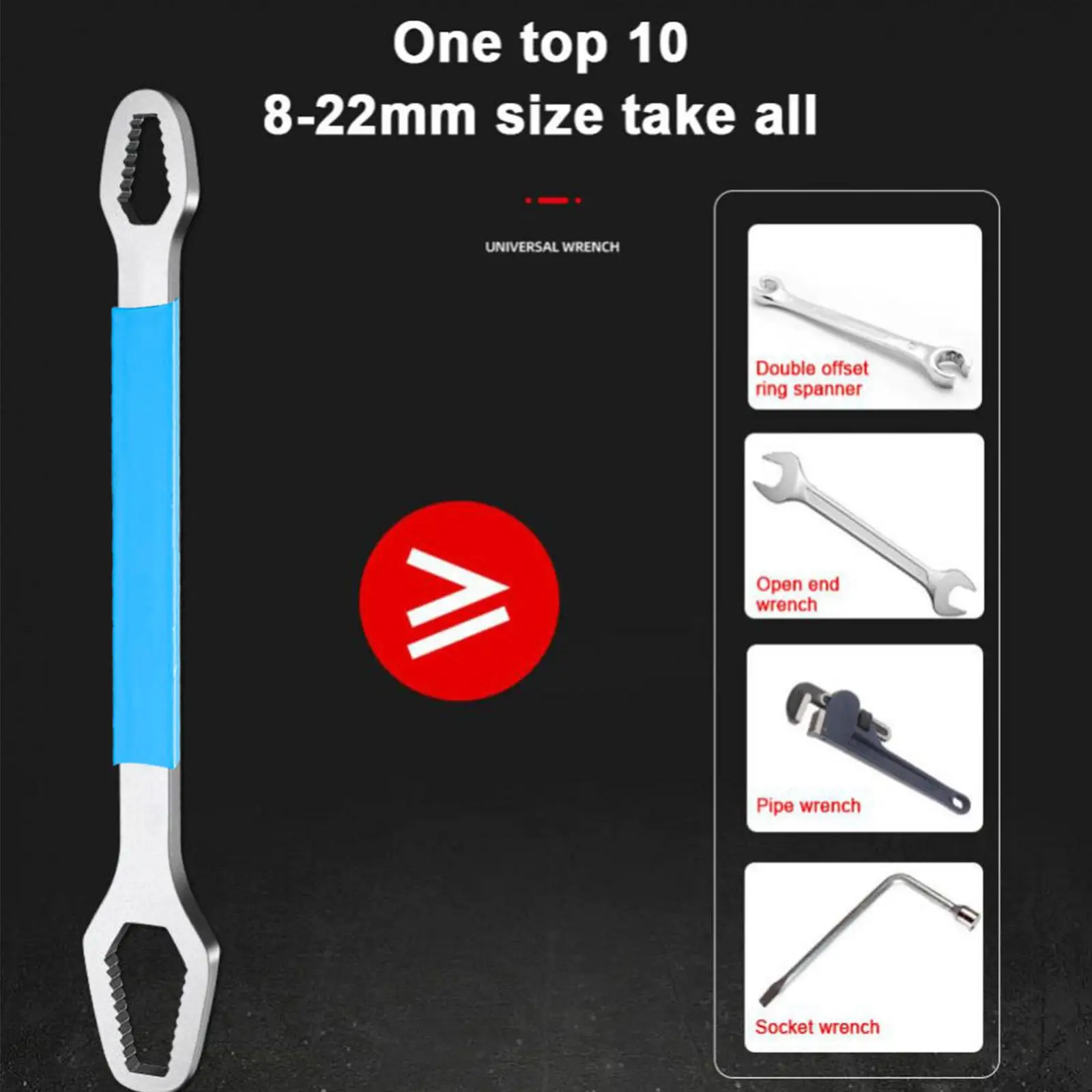 1. Многофункциональный универсальный гаечный ключ: самозатягивающийся универсальный гаечный ключ, подходит для разборки винтов различных спецификаций.