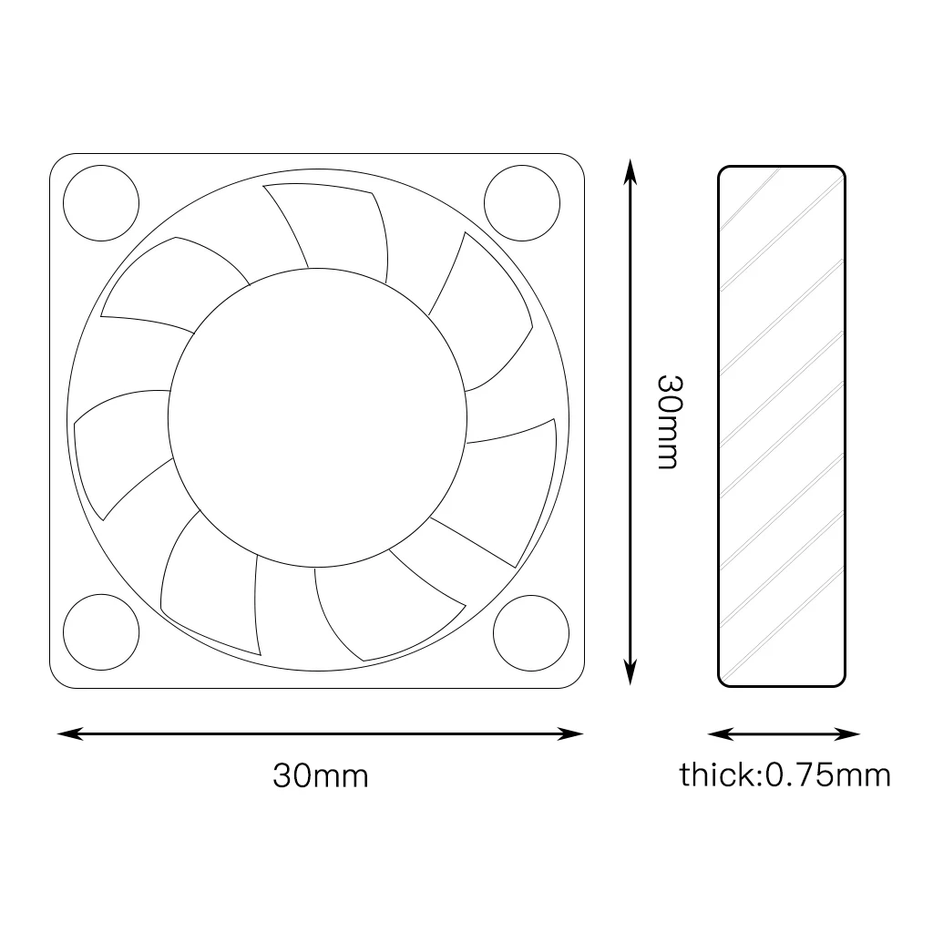1 шт. 3007 Вентилятор охлажденияДля Voron 0.1 3D принтер 3007 5V осевой вентилятор Спецификация: Размер: 30*30*7 мм Напряжение: 5 В постоянного тока Ток: 0.15A Скорость: 9500 + 5% об/мин Шум: 27.6DBA Объем воздуха: 3.14CFM Мощность: 0,75 W Давление ветра: 4.50mm2HO Срок службы: 30000 часов при 40 °C Конструкция подшипника: гидравлический подшипник Посылка включает: Вентилятор охлаждения * 1