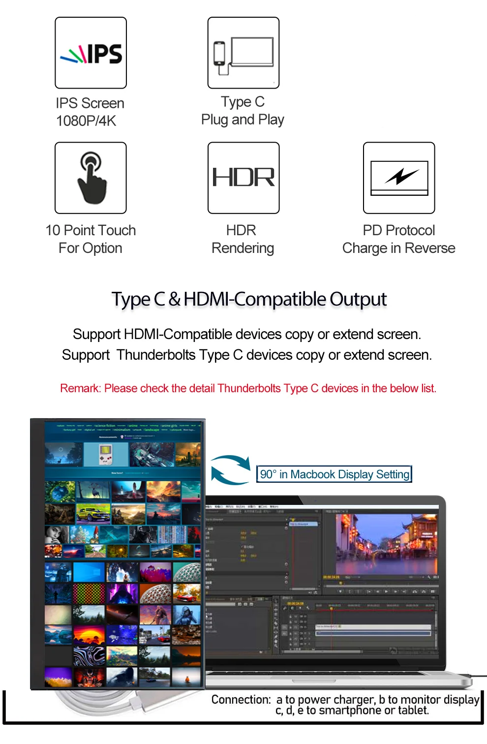 Тип C и HDMI-совместимое двойное Выходное соединениеШирокоугольный экран 1920*1080P + HDR IPS 178 °