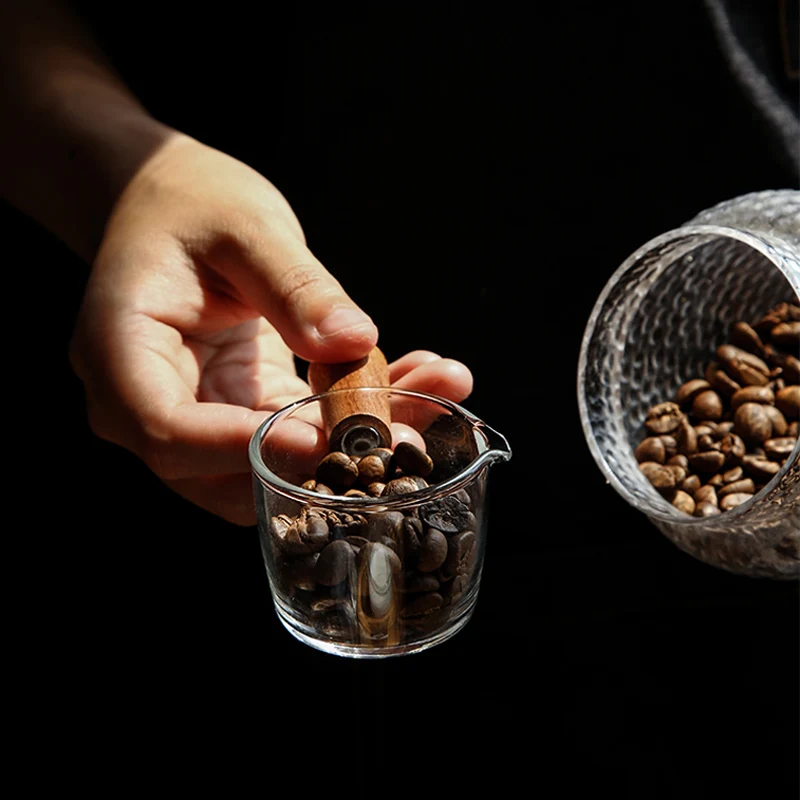 Деревянная ручка эспрессо мерный стаканчик со шкалой, с одним носиком, который облегчает заливание кофе, молока или другой жидкости.