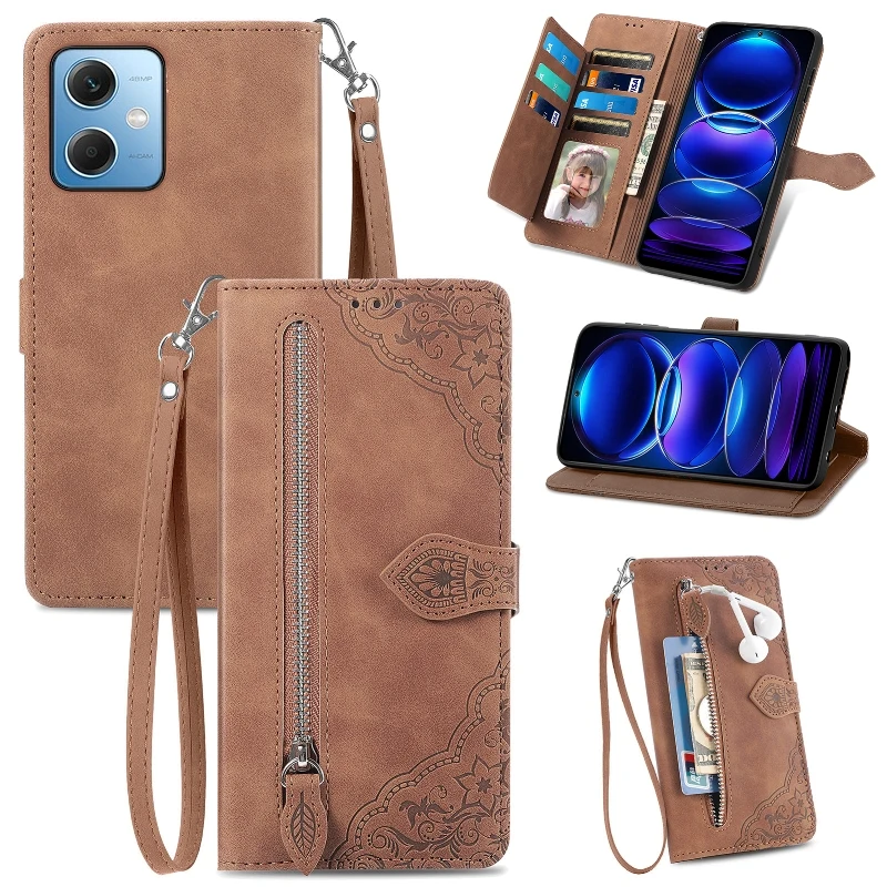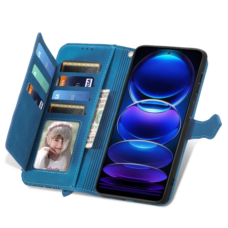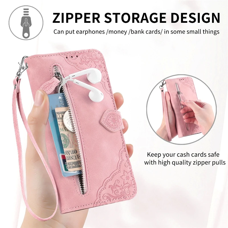 Zipper Wallet Multi Cards Wrist Strap Flip Cover For Xiaomi Redmi 10 9T Note12 11 10 Pro 9S 8T 7 6 4X Magnetic Leather Phone Case