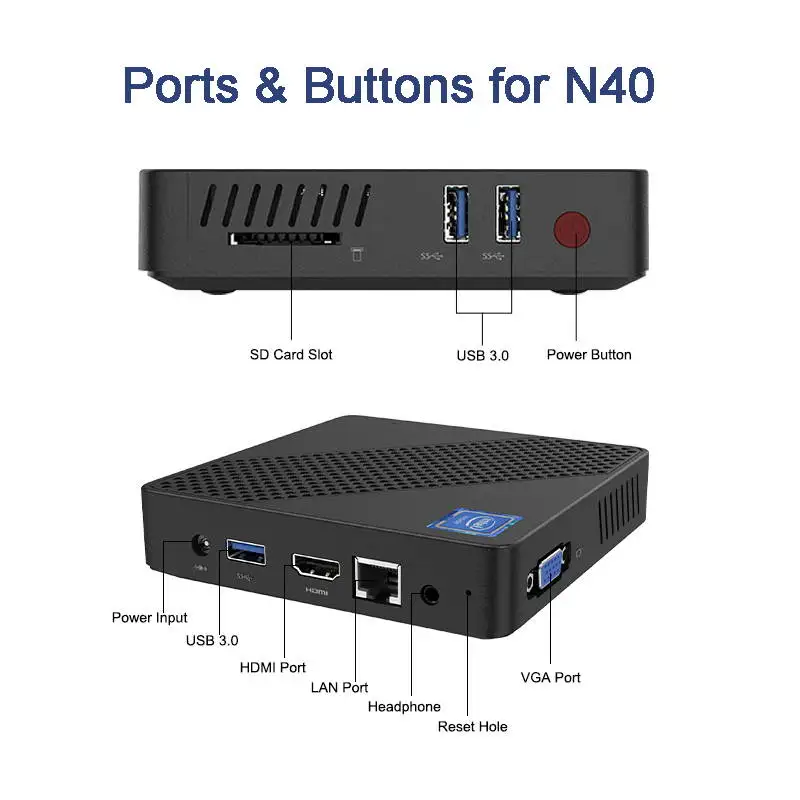 N40 Mini PC-идеальное устройство для промышленного и коммерческого отдыха. Подходит для монитора, проектора, телевизора, принтера и другого офисного оборудования.