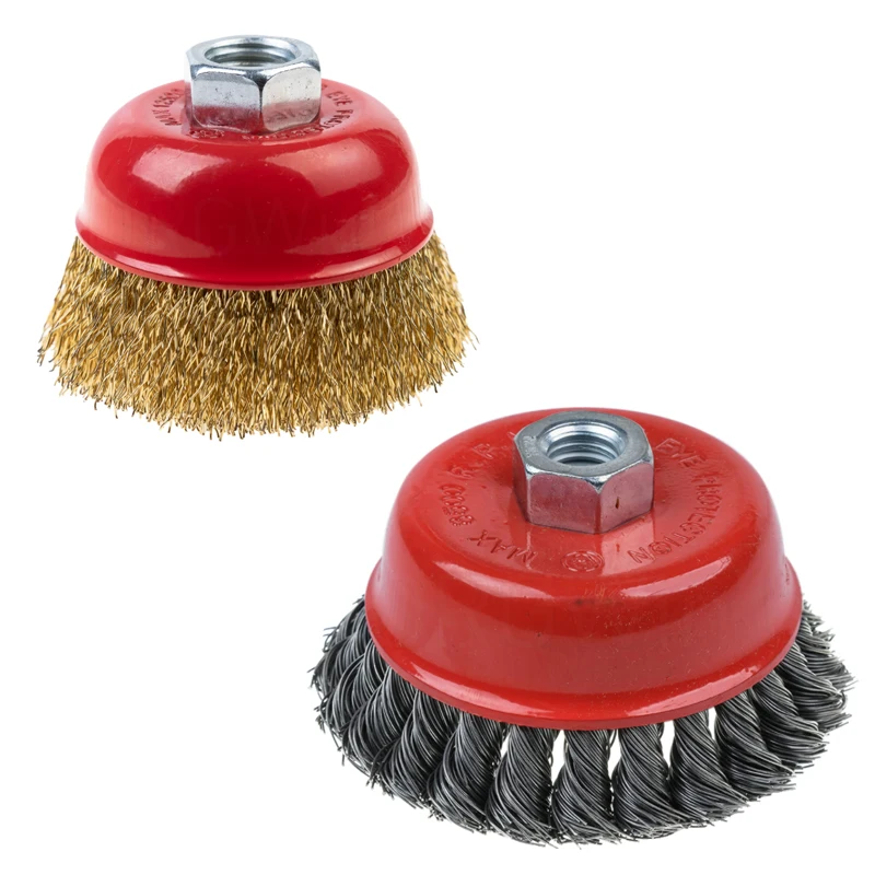 65 мм-150 мм стальная проволочная щетка латунные покрытые колеса щетки дрель роторные инструменты M14 Металл Удаление ржавчины полировальная щетка