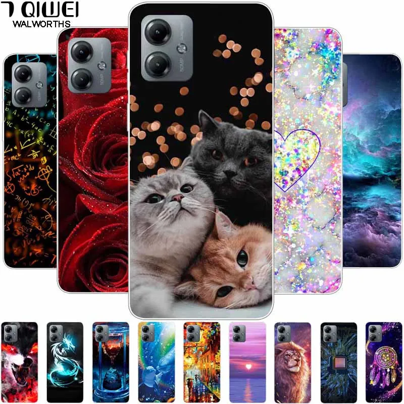 Для Moto G14 G 14 чехол 4G Роскошные животные Прозрачный чехол для Motorola Moto G14 чехол для телефона Cat Lion Capas на MotoG14 Funda