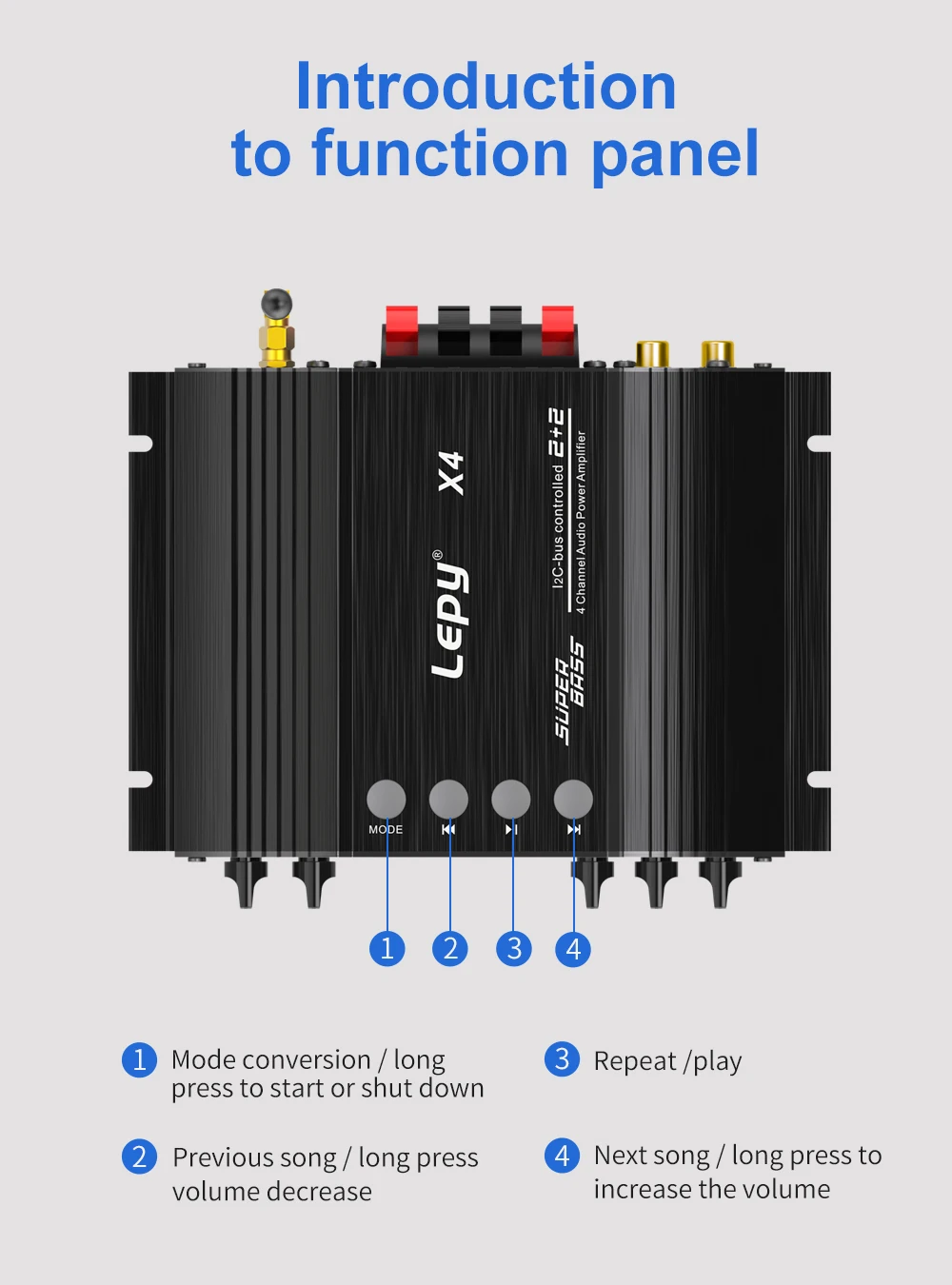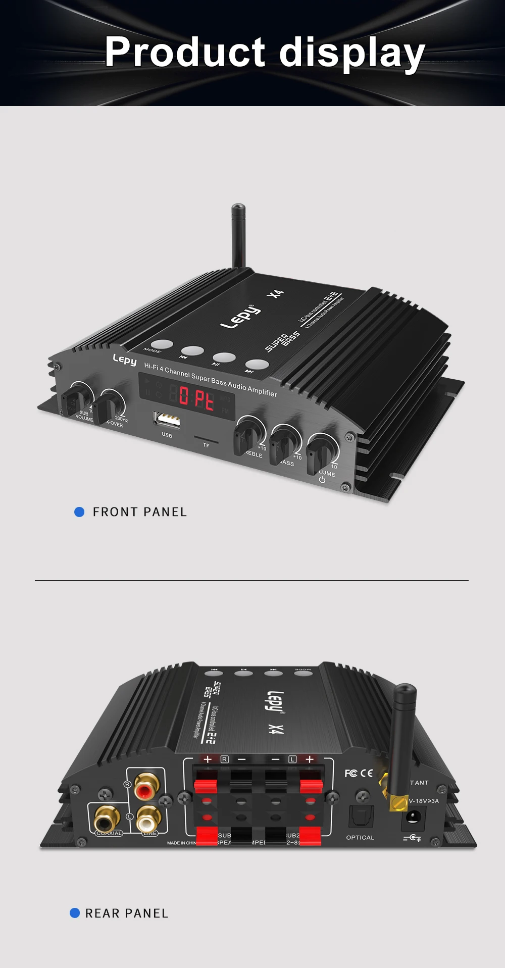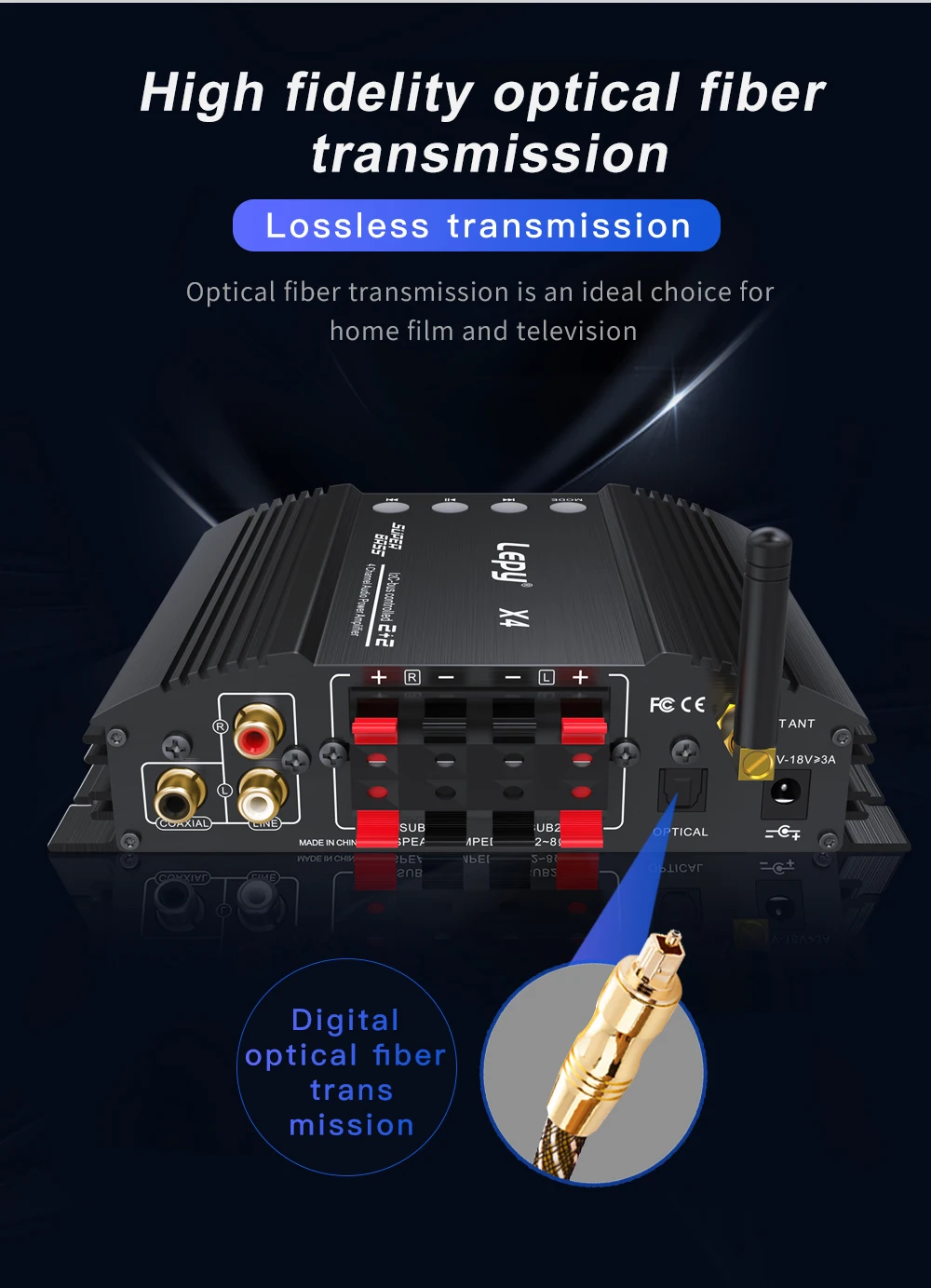 LEPY X4 HIFI 4-канальный Bluetooth 5,0 усилитель мощности, оптическое волокно, коаксиальный вход, 2,1 аудиоусилитель двойной выход на сабвуфер