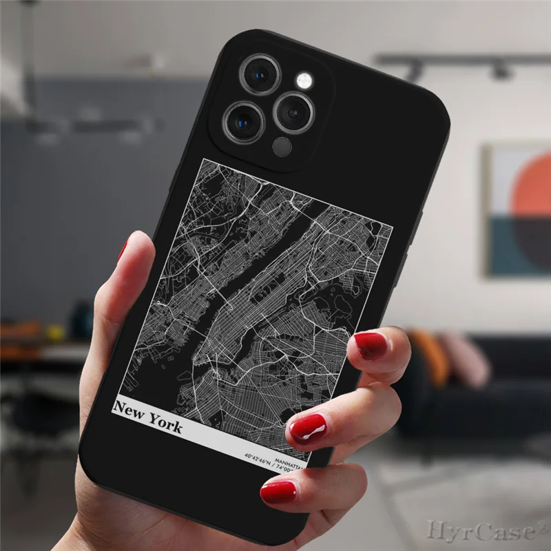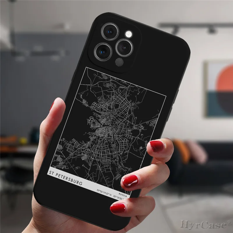 Для iPhone 13 11 12 14 Pro Max Mini 15 Plus 15ProMax черный чехол Москва Путешествия страна город эскиз карта силиконовый защитный чехол