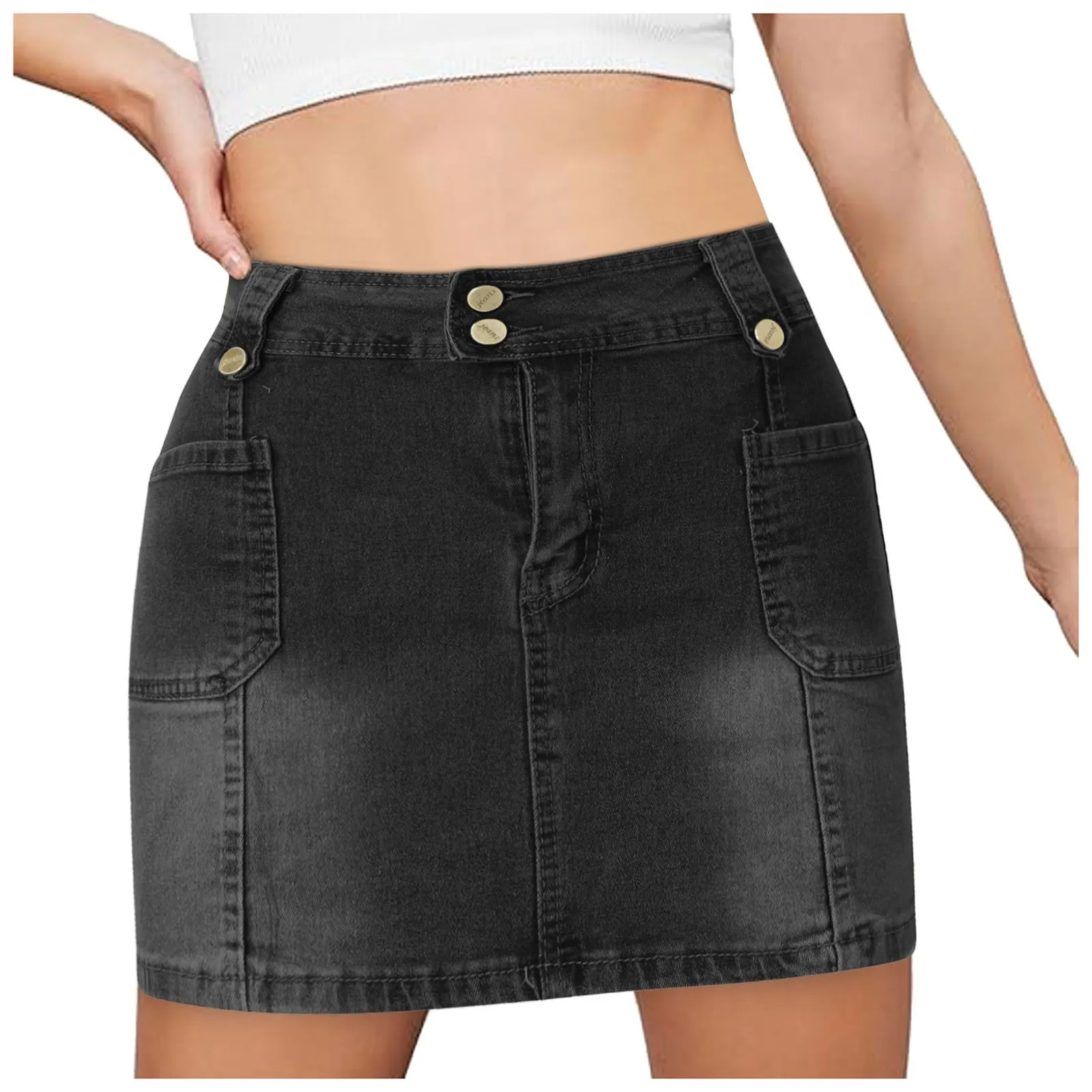 Юбки джинсовой ткани свободного пригонки женщин юбка модной случайной универсальной короткая