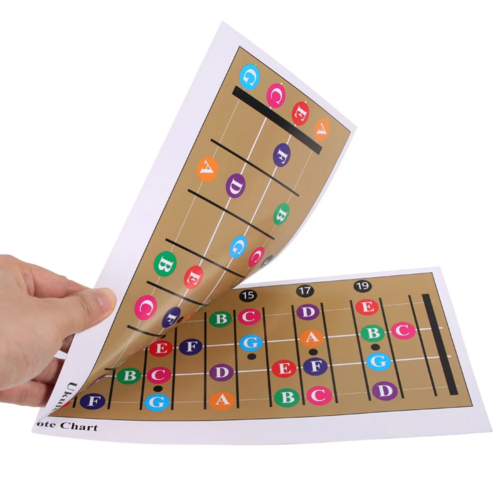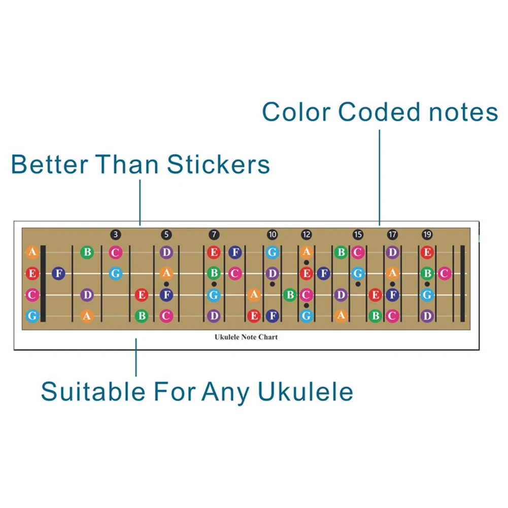 * Лучше, чем наклейки *: Таблица заметок предлагает бесчисленные преимущества по сравнению с наклейками без каких-либо компромиссов: не нужно возиться с грифом вашего драгоценного инструмента, легко настроить, когда вам нужно потренироваться; иметь несколько укулеле? Все, что вам нужно, это Таблица заметок.