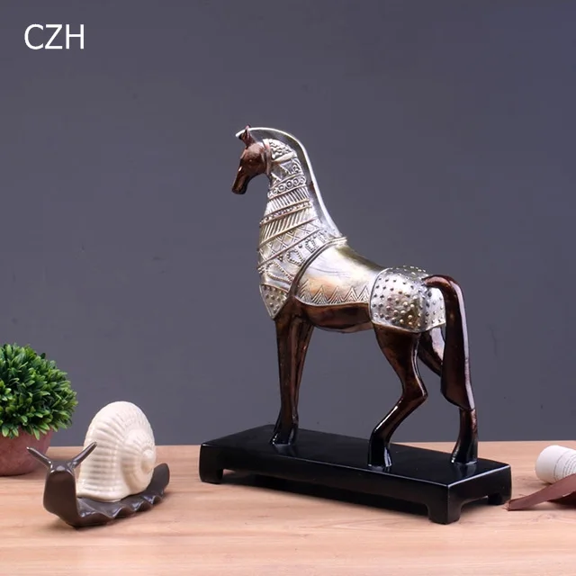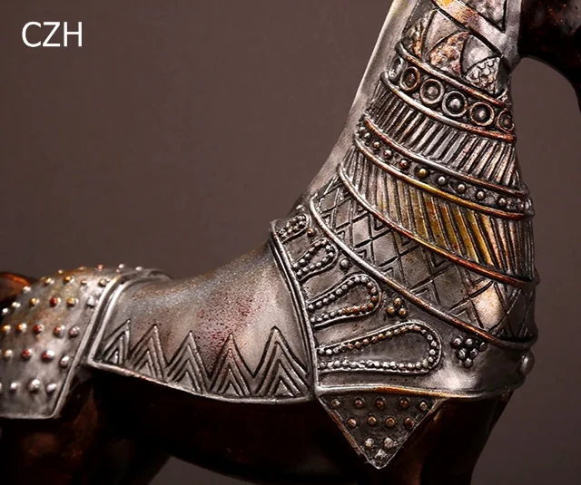 1. Описание: скульптура лошади античной войны Elctroplated Смола Броня зарядное устройство статуя художественное украшение ручной работы Домашний Декор Бизнес подарок.