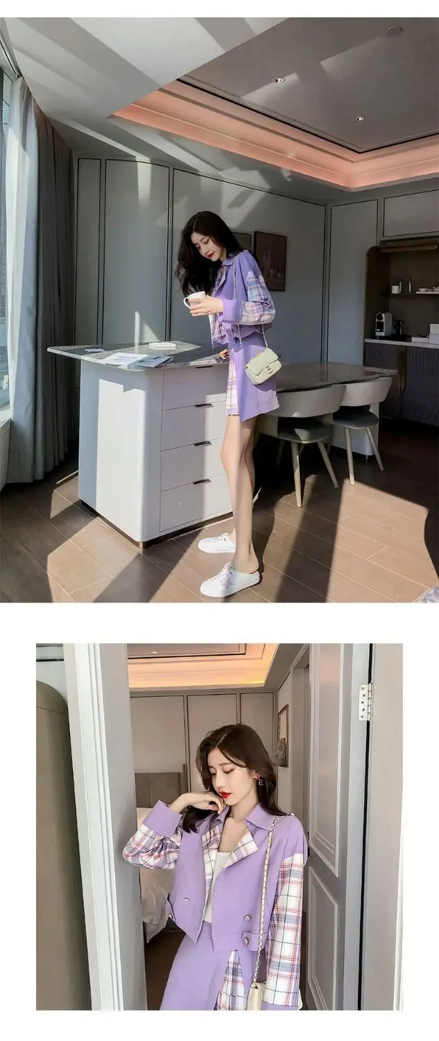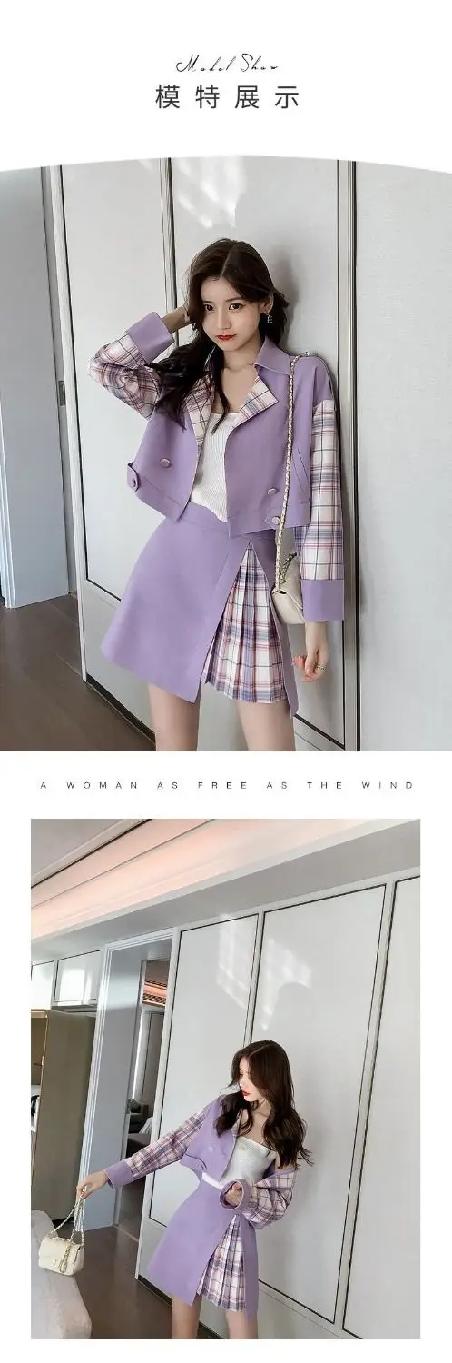 Женский деловой костюм из двух предметов Корейская твидовая короткая куртка