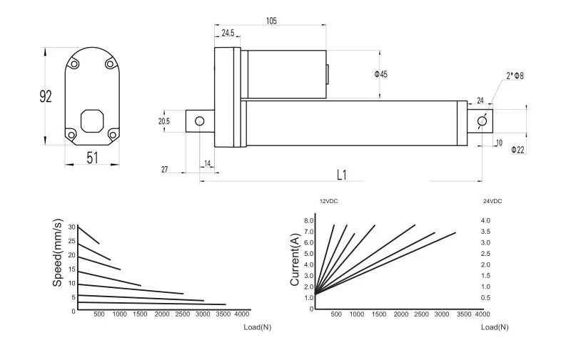 Линейный привод 2 дюйма/50 мм 12/24 В постоянного тока 225 фунтов/100 кг/1000 Н |