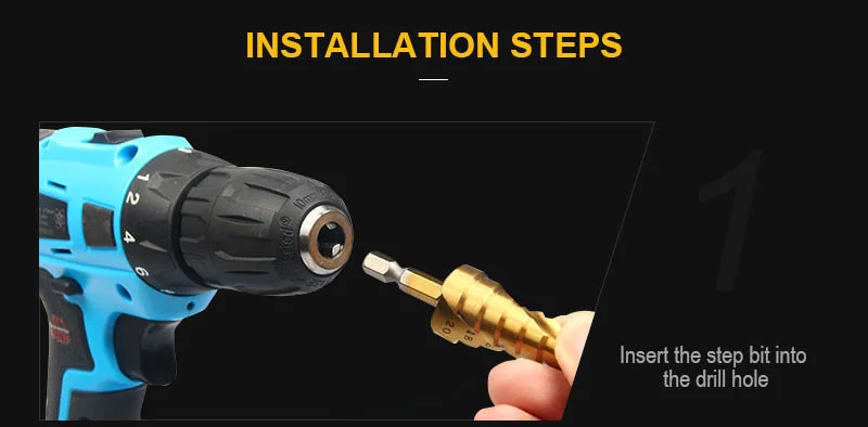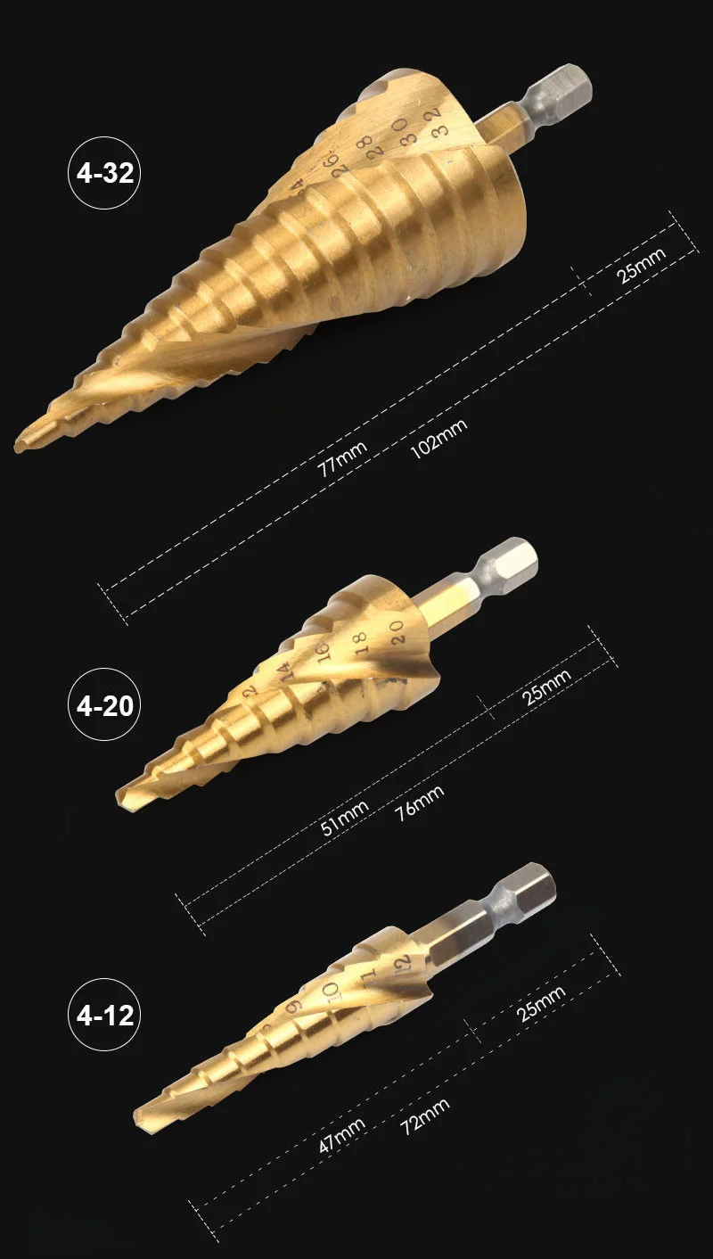 Сверло ступенчатое из быстрорежущей стали, с треугольным хвостовиком, 4-32 мм, 3 шт.