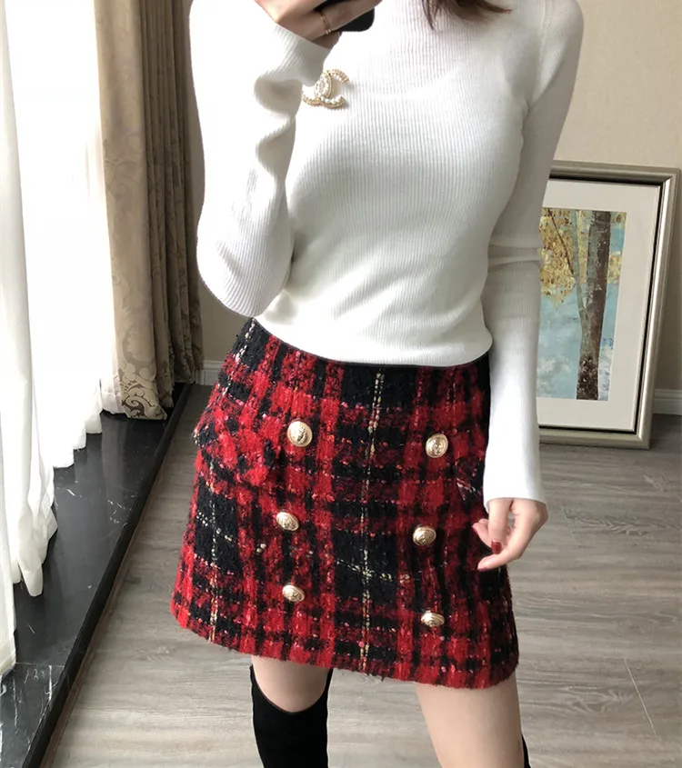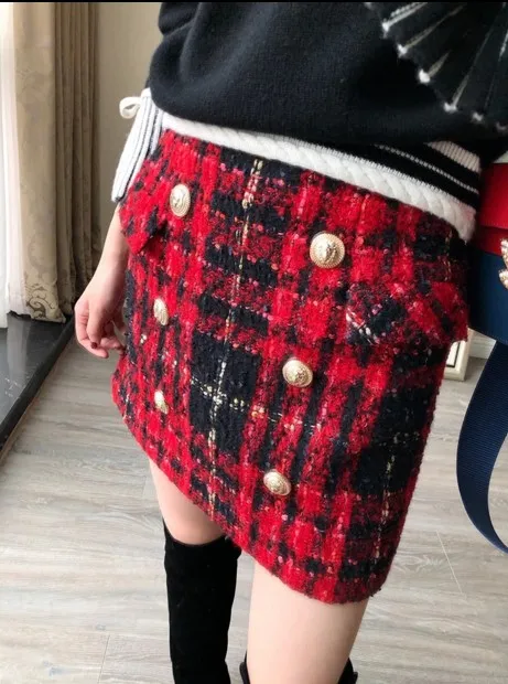 Новая зимняя юбка женская клетчатая твидовая юбка с высокой талией юбка-брюки элегантная Офисная Женская юбка faldas mujer размера плюс