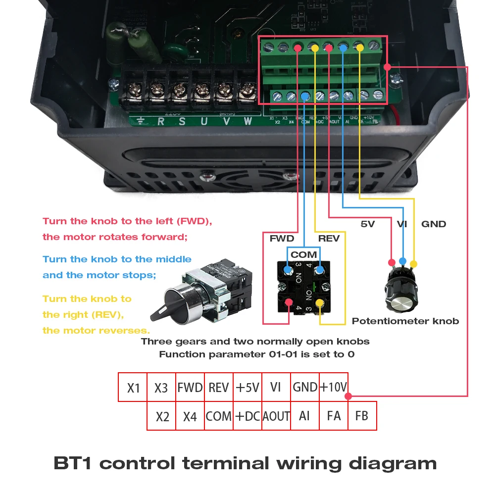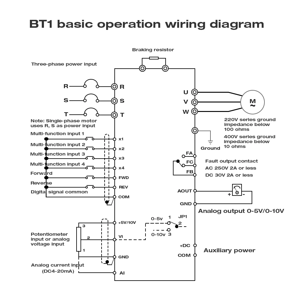 Примечание: он не может подключить мотор возбуждения, может повредить инвертор, может подключаться только асинхронный двигатель,