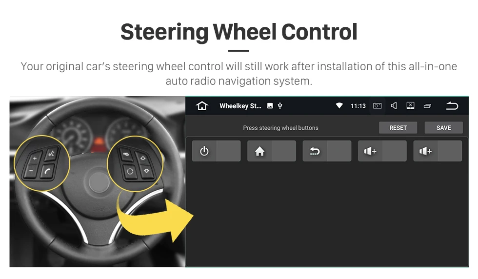 Управление рулем:Управление рулем вашего оригинального автомобиля будет работать после установки.