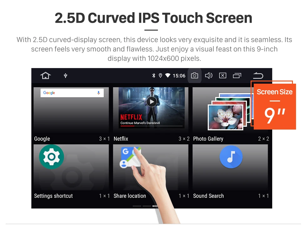 Экран: HD 1024*600 Мульти-сенсорный экран с гладкой работой,Высокая чувствительность и обильное взаимодействиеДля лучшего обзора вашей дороги.