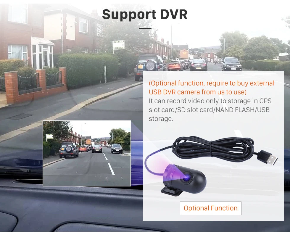 TPMS:Прекрасно соединенный с этим головным устройством с простой установкой, TPMS сообщает информацию о давлении шин в режиме реального времени с помощью дисплея пиктограммы или простого предупреждающего светильник низкого давления, чтобы помочь вам сэкономить расход топлива, продлить срок службы шин, уменьшить время простоя и техническое обслуживание и повысить экологическую эффективность. Раннее распознавание неисправности шин, предоставленных TPMS, может избежать дорожно-транспортных происшествий, чтобы повысить безопасность во всем процессе вождения.