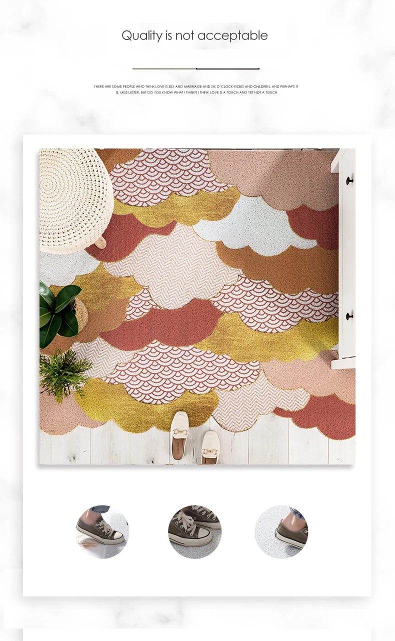 Стильный дизайн, который подходит для каждого дома: он разработан таким образом, что подходит для входа, прихожей, фойе и т. д. Дверной коврик из ПВХ полностью сидит на полу и не поворачивается по углам. Он никогда не выцветал и прослужит годами, а также качество остается новым всегда после стирки.