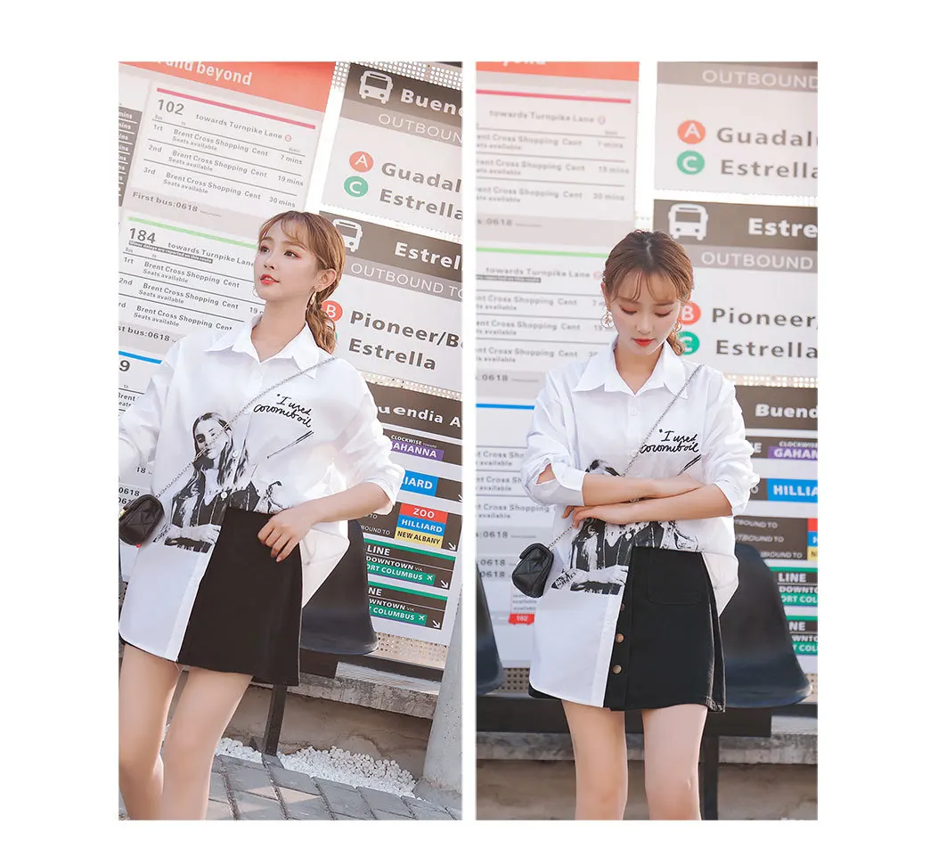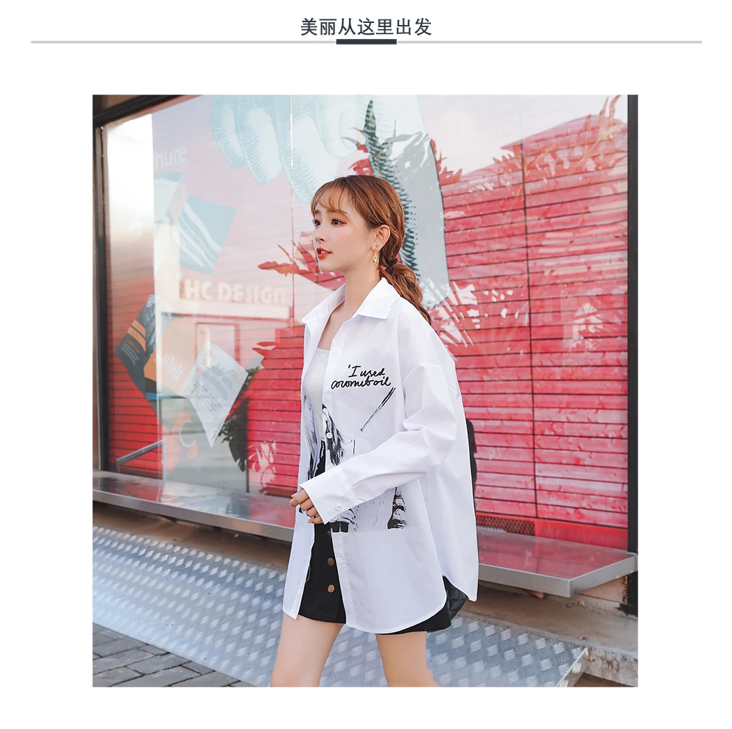 QING MO, женская белая блузка с принтом персонажа, блузка с длинным рукавом, хлопковая Асимметричная блузка, летние топы, ZLDM129