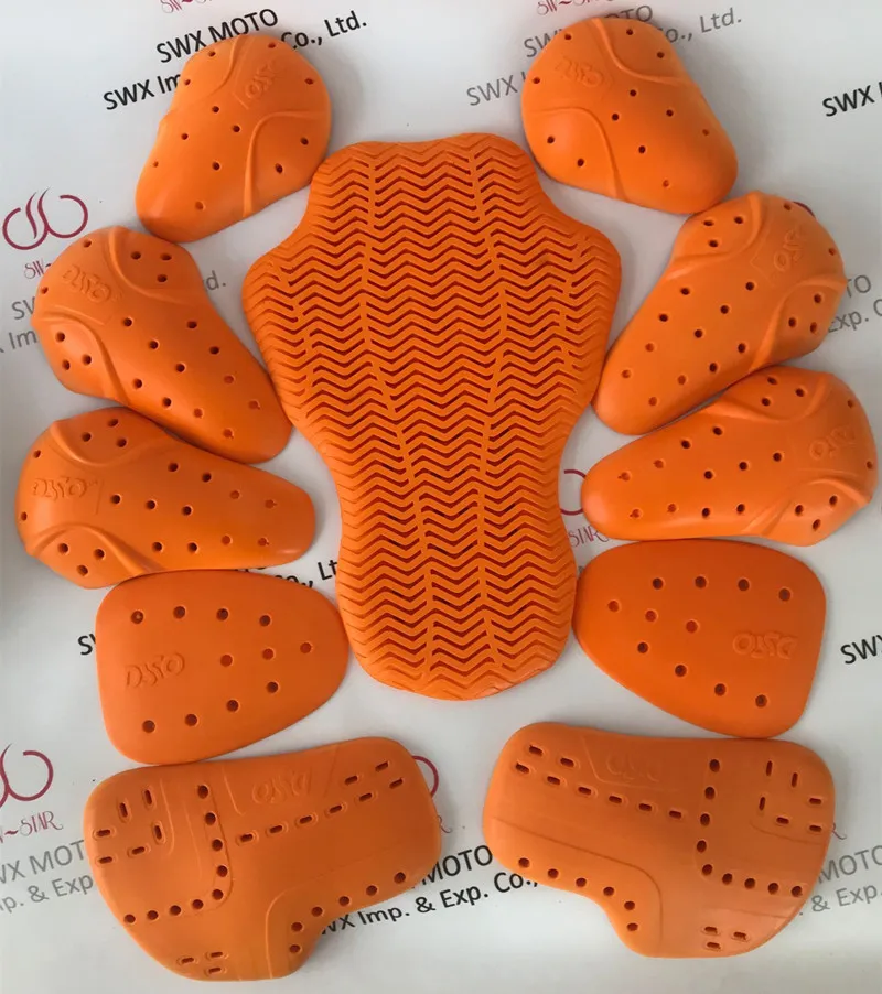 D3O is a material invented by British engineer Richard Palmer. It belongs to the category of "expandable foam" material and is composed of an "intelligent molecule" (adhesive glue and a polymer compound). Impacting a single material, it can exhibit two mechanically similar states (hard and soft) under different gravitational impacts. Material characteristicsD3O material maintains a relaxed state under normal conditions, soft and elastic. Once subjected to severe impact or extrusion, the molecules immediately lock each other, quickly tighten and harden to digest external force, forming a protective layer, when the external force disappears. After that, the material will return to its original slack soft state. It can react differently in different impact situations in nanoseconds D3O materials are mainly used in sportswear protective gear, such as ski suits, motorcycle suits, bicycle Jerseys, water sportswear, etc., as well as extreme, police, military protective equipment, etc. Package include: Back pad = Model 8115pcs = backpad 811 + shoulder 105 + elbow 1067pcs = backpad 811 + shoulder 105 + elbow 106 + Knee 1067pcsB = backpad 811 + shoulder 105 + elbow 106 + chest 1099pcs = backpad 811 + shoulder 105 + elbow 106 + Knee 106 + hip 10711pcs = backpad 811 + shoulder 105 + elbow 106 + Knee 106 + hip 107 + chest 109 Size: Model 811 Back: 43 L cm * 29.5 W cm *2.0 D cmModel 105 Shoulder: 19.0 L cm x 14.0 W cm x 1.2 D cm, Model 106 ELBOW / KNEE: 23.5 L cm x 14.5 W cm x 1.2 D cmModel 107 Hip: 19.0 L cm x 14.5 W cm x 1.2 D cmModel 109 Chest 26.5 L cm x 18.5 W cm
