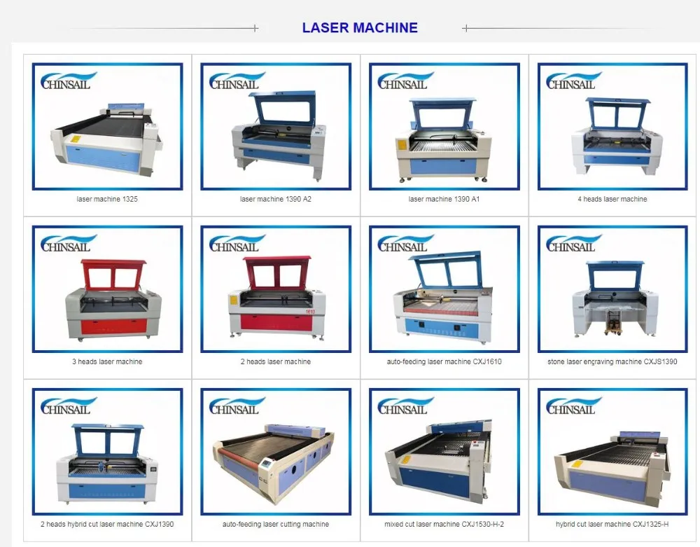 Brand NameCHINSAILModel NumberCXJ1390ConditionNewCNC or NotCNCMeasurement unitpiece/piecesEach pack1Laser power90W/100W/130W/150W optionalFunctionCutting Engraving Non-metal MaterialsControl systemRuida Control SystemDriving systemStepperWorking tableHoneycomb/Blade tableColorRequirementSoftware supportArtcut.Coreldraw.Photoshop.AutoCADSupport Graphic FormatPLT AI BMP DST DXFLaser tubeSealed CO2 Glass TubeName1290 1390 laser cloth cutting machine with blade table for sale