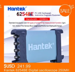 Hantek 6254BE цифровой осциллограф 250 МГц полоса пропускания автомобильные осциллографы автомобильный детектор 4 канала 1Gsa/s USB PC Osciloscopio