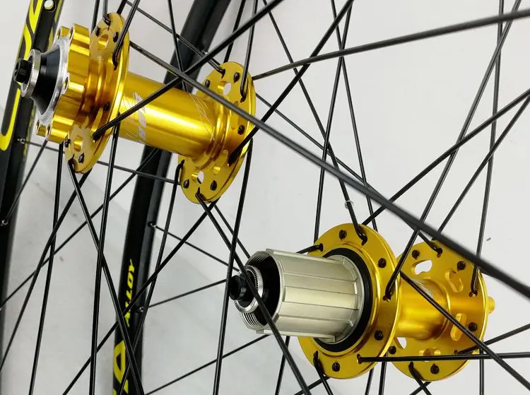 Model: HB12/PA24 round spoke wheel Specification: 26/27.5/29 ",24 holes, 100MM in front and 135MM in back Hub: front two bearing and rear four bearing, 7075 aviation aluminum, imported super wet bearing Base: 7075 cold forging six jaw base, independent jack shrapnel, 7/8/9/10/11/12 speed flywheel all supported installation Spokes: 24 spokes in front/back, 45# steel round bars/with 14MM rust-proof copper head Rims: double-layer aluminum alloy insert rims, ring height 21MM, black sandblasting anode, frosted drawing metal standard Attached wheel set: quick detaching/tire pad/repair 2 spokes, no need to buy extra! The rear hub design is free of tool disassembly (it can be completed by using middle tower maintenance/refueling without any tools later).