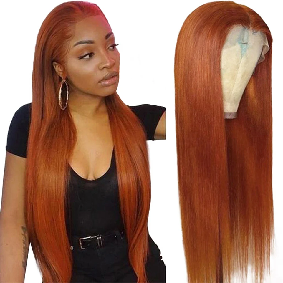Парики из человеческих волос с имбирным кружевом спереди