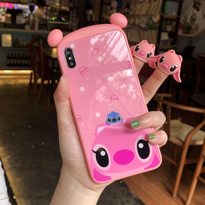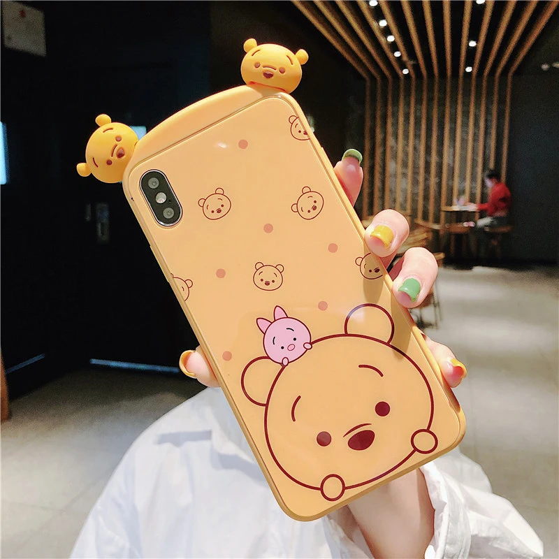 Для iphone XR милый 3D Розовый пантера винни Минни стеклянный чехол для телефона iphone XS max X 7 P 8 8 plus 6 S 6SP стежка Задняя крышка