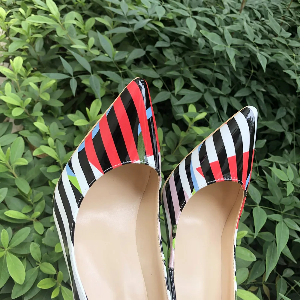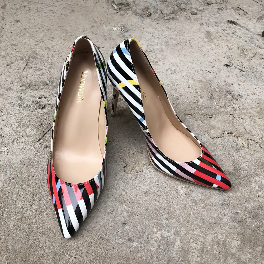Название бренда: Veowalk Материал верха: лакированная кожа Материал подкладки: искусственная кожа Материал подошвы: Резина Высокий каблук: 12 см/10 см/8 см Цвет: в полоску Размер: 33 34 35 36 37 38 39 40 41 42 43 44 45