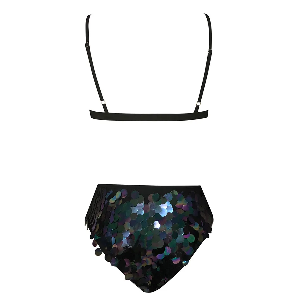 Женский комплект из двух предметов, сексуальный купальник с открытой спиной и блестками, пляжная одежда